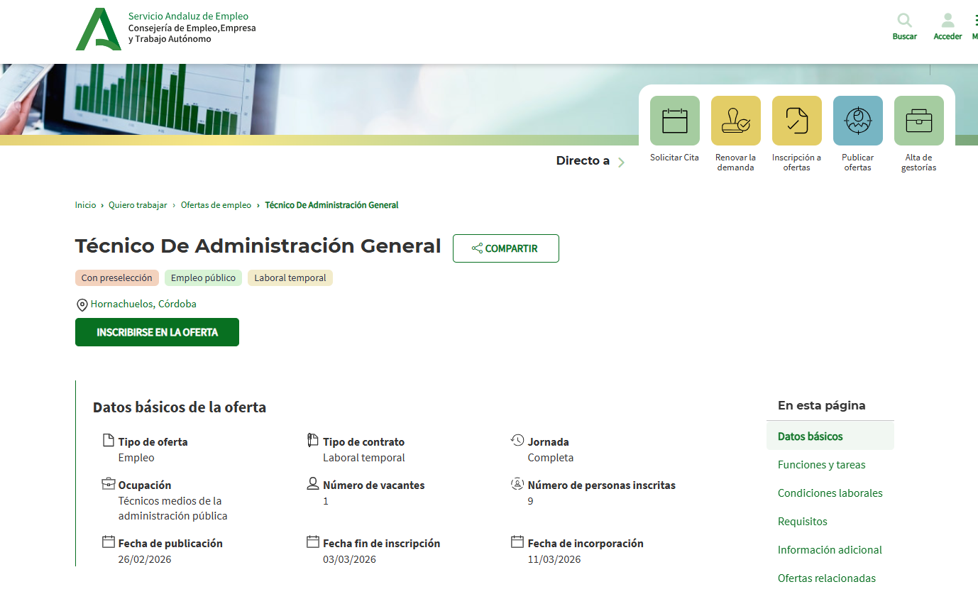 El Servicio Andaluz de Empleo ha publicado una oferta para el puesto de 𝗧𝗲́𝗰𝗻𝗶𝗰𝗼/𝗮 𝗱𝗲 𝗔𝗱𝗺𝗶𝗻𝗶𝘀𝘁𝗿𝗮𝗰𝗶𝗼́𝗻 𝗚𝗲𝗻𝗲𝗿𝗮𝗹 en nuestro municipio.