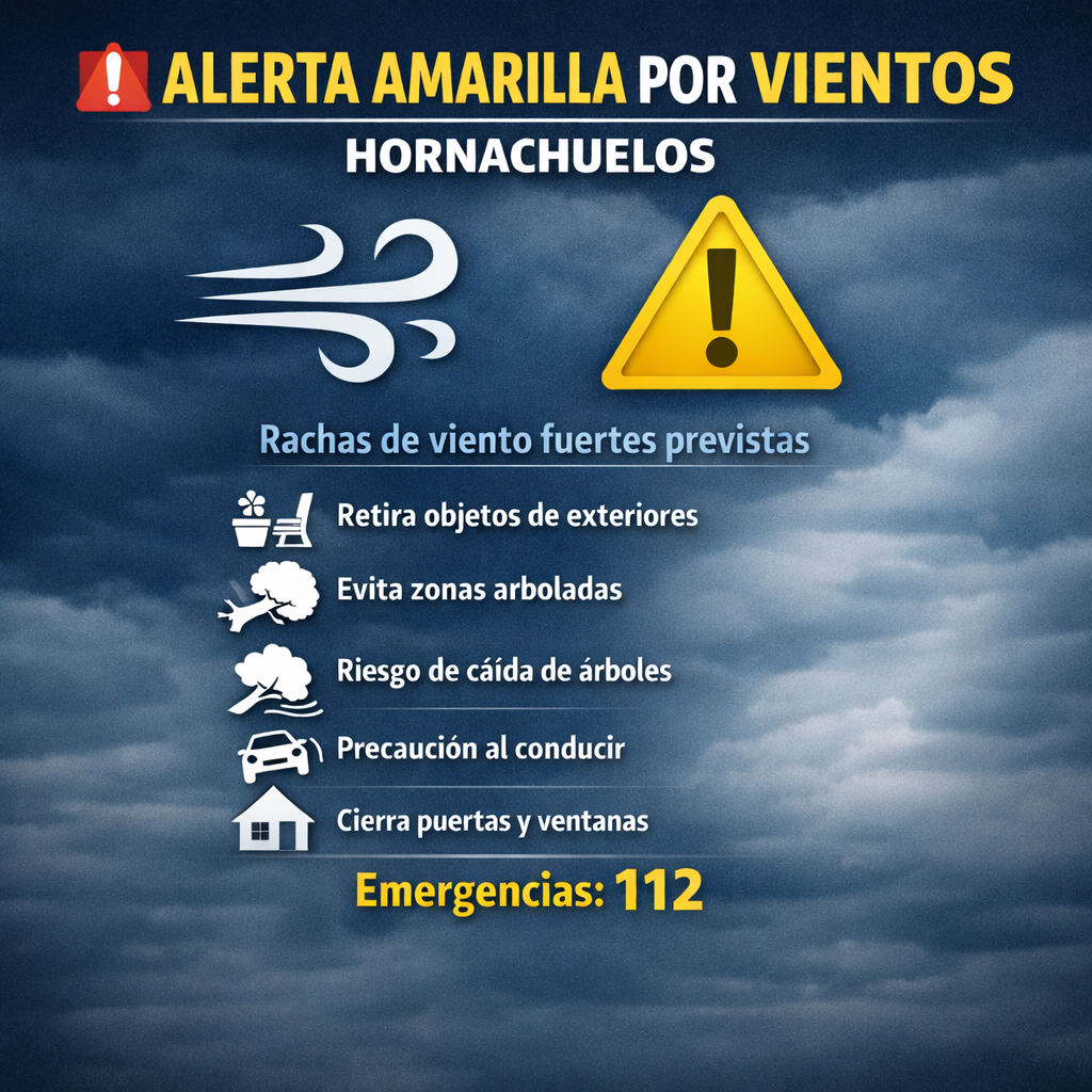 La AEMET ha activado el aviso amarillo por viento 🌬️. Se esperan rachas fuertes que pueden provocar incidencias.
