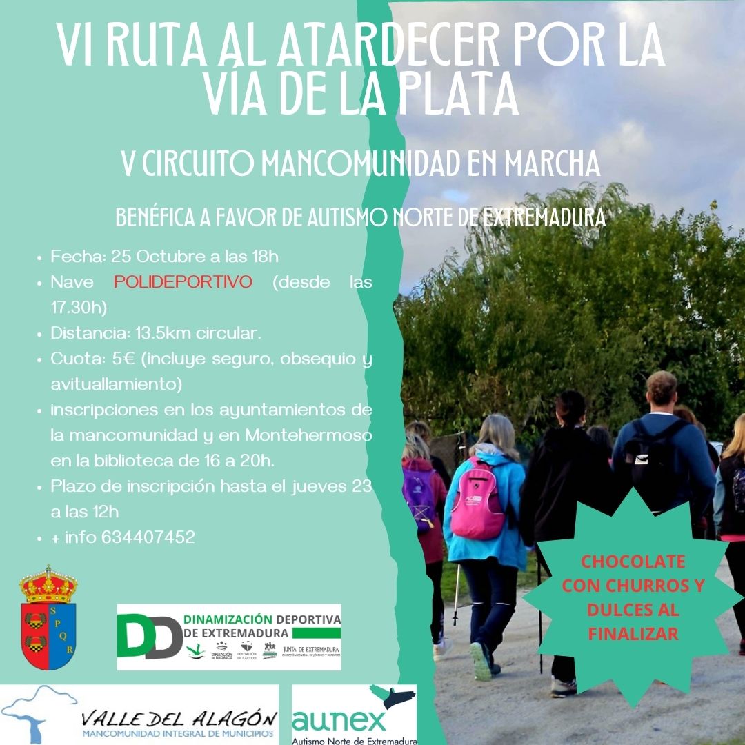Se comunica que la VI RUTA AL ATARDECER POR LA VÍA DE LA PLATA modifica el lugar de salida y llegada al polideportivo.