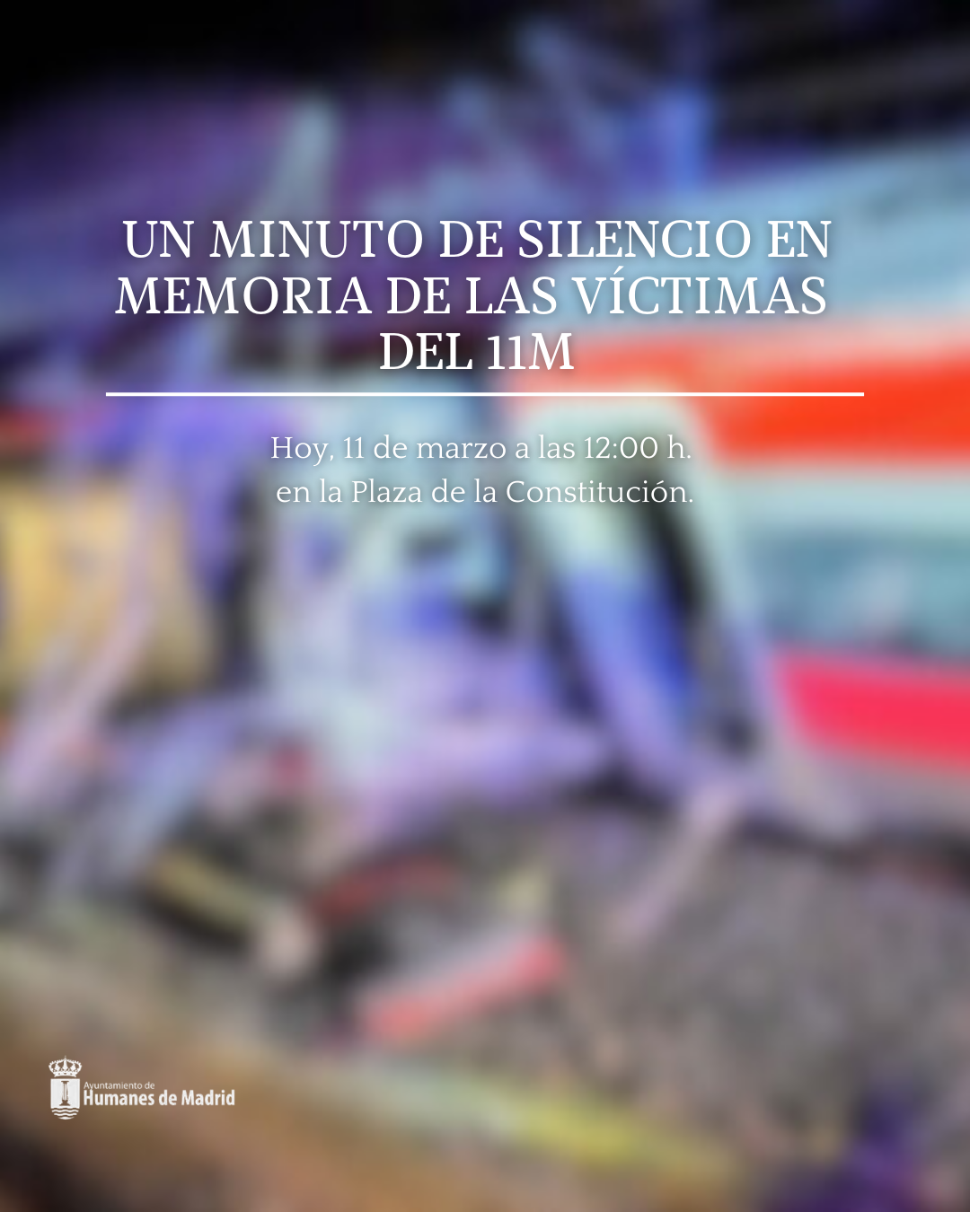 Con motivo del Día Europeo de las Víctimas del Terrorismo, el Ayuntamiento de Humanes de Madrid convoca hoy, 11 de marzo, a las 12:00 horas, un minuto de silencio en recuerdo de todas las víctimas que dejaron los terribles atentados de Madrid de 2004.