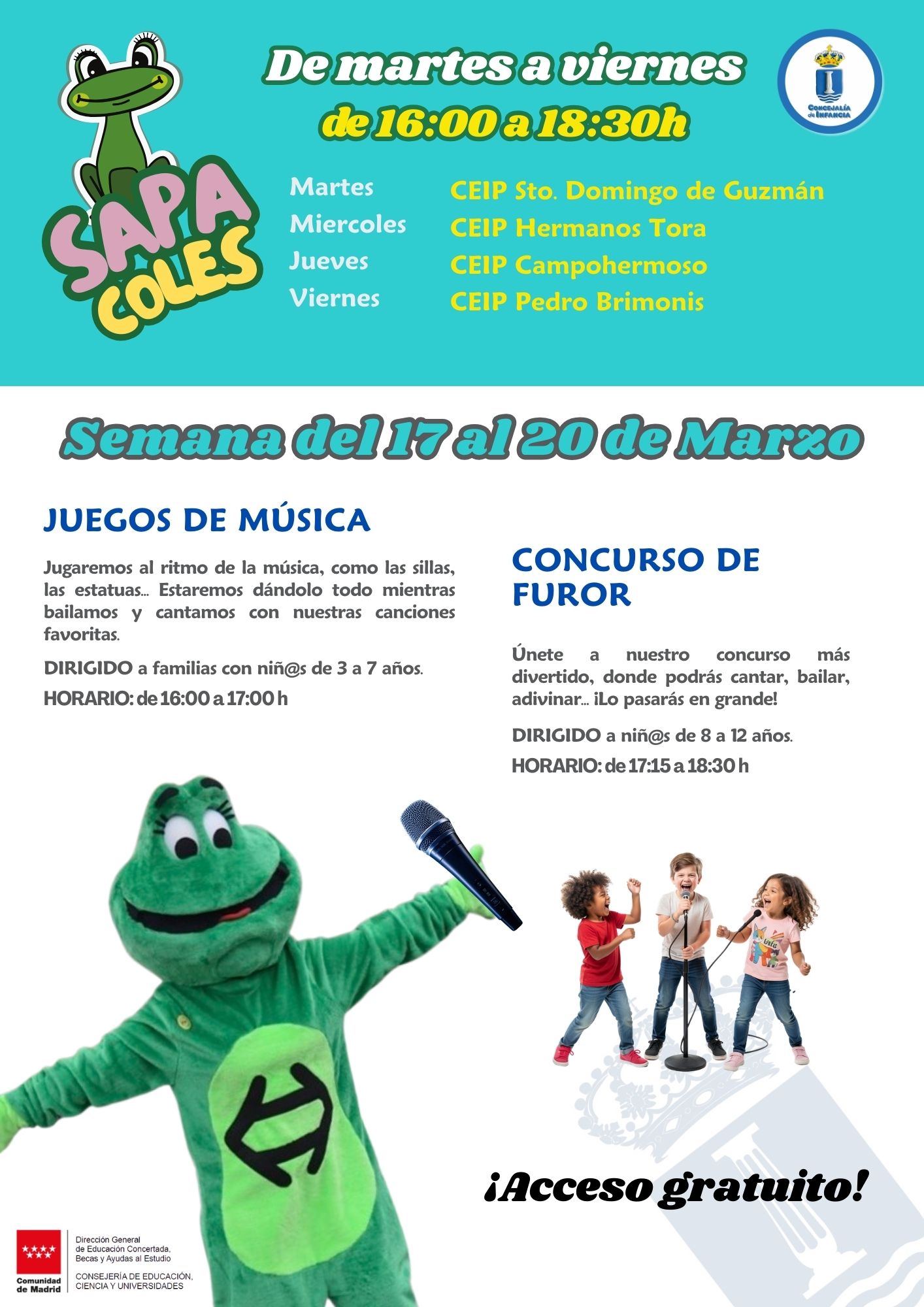 Esta semana en el Sapa Coles, realizaremos un super concurso musical donde los peques ,cantaran ,adivinaran canciones ,jugaran con ritmos y demuestran cuanto saben de música, mientras se divierten, ríen, y se convierten en auténticos estrellas por un día