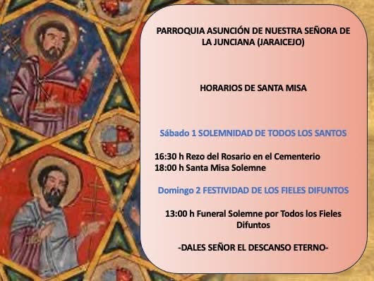 📢 Se informa que la misa de difuntos se celebrará el sábado, 1 de noviembre de 2025, a las 18:00 h.