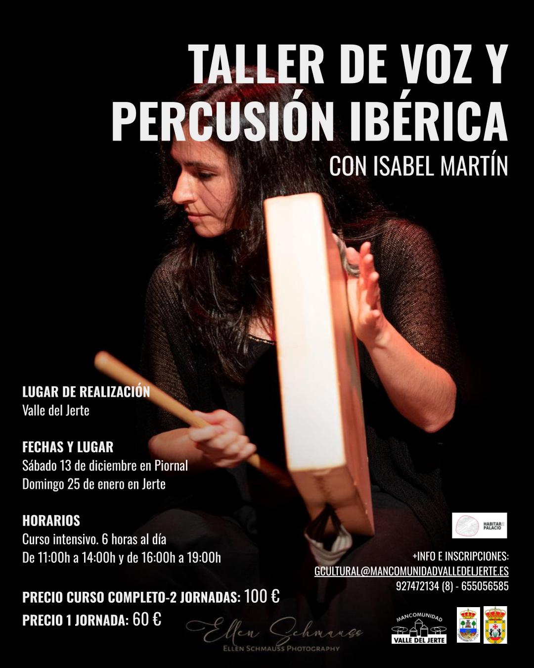Hola! Os compartimos de nuevo el cartel de los cursos intensivos de Canto y Percusión ibérica con Isabel Martín en el Valle del Jerte. Finalmente hay la opción de participar en una sola de las jornadas (13 de diciembre o 25 de enero) o en las dos. Si tenéis alguna duda podéis llamar o escribir al teléfono que aparece en el cartel. Aquí las inscripciones: https://mvj.es/culturavj/
