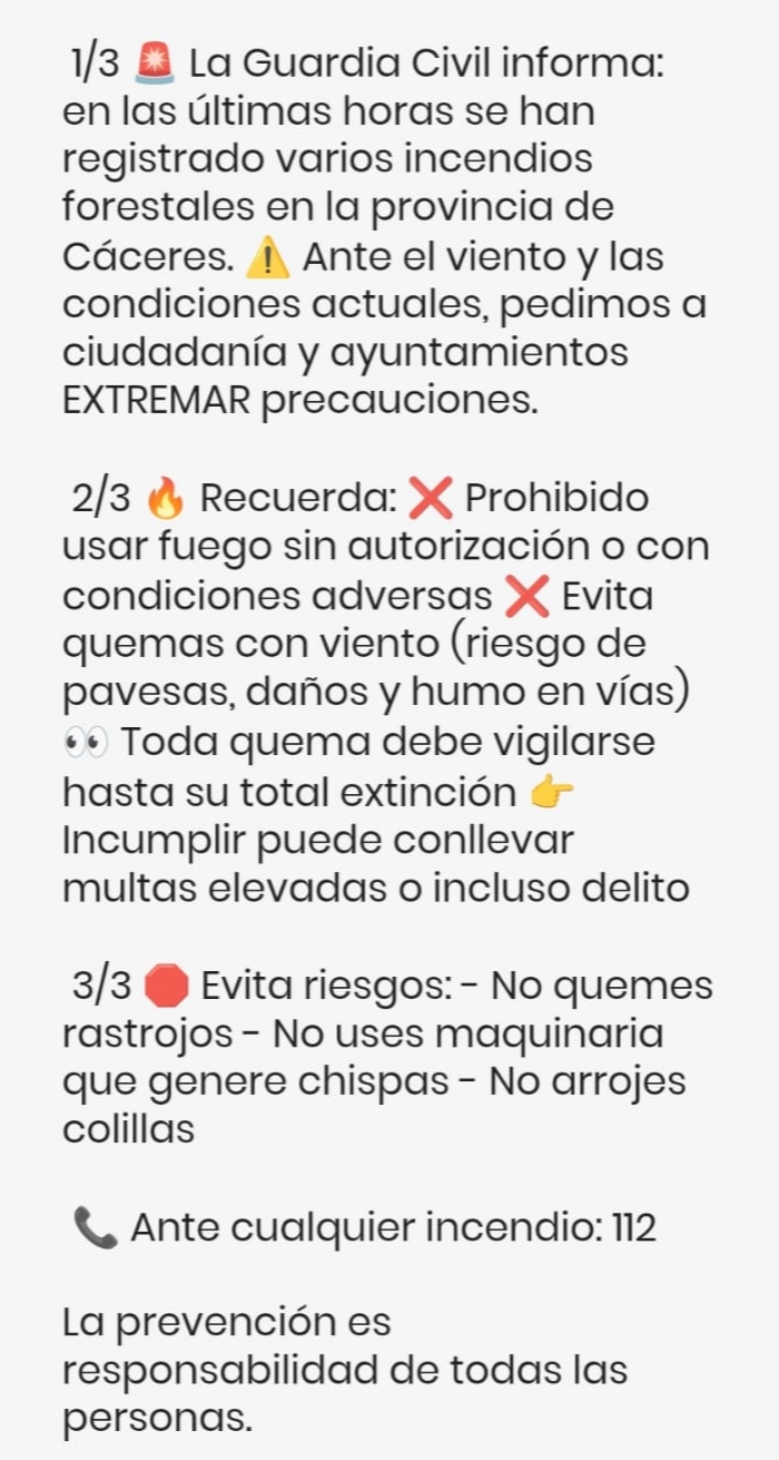 LES INFORMAMOS SOBRE EL PLAN DE ACTUACIÓN MUNICIPAL ANTE RIESGO DE INCENDIOS FORESTALES.