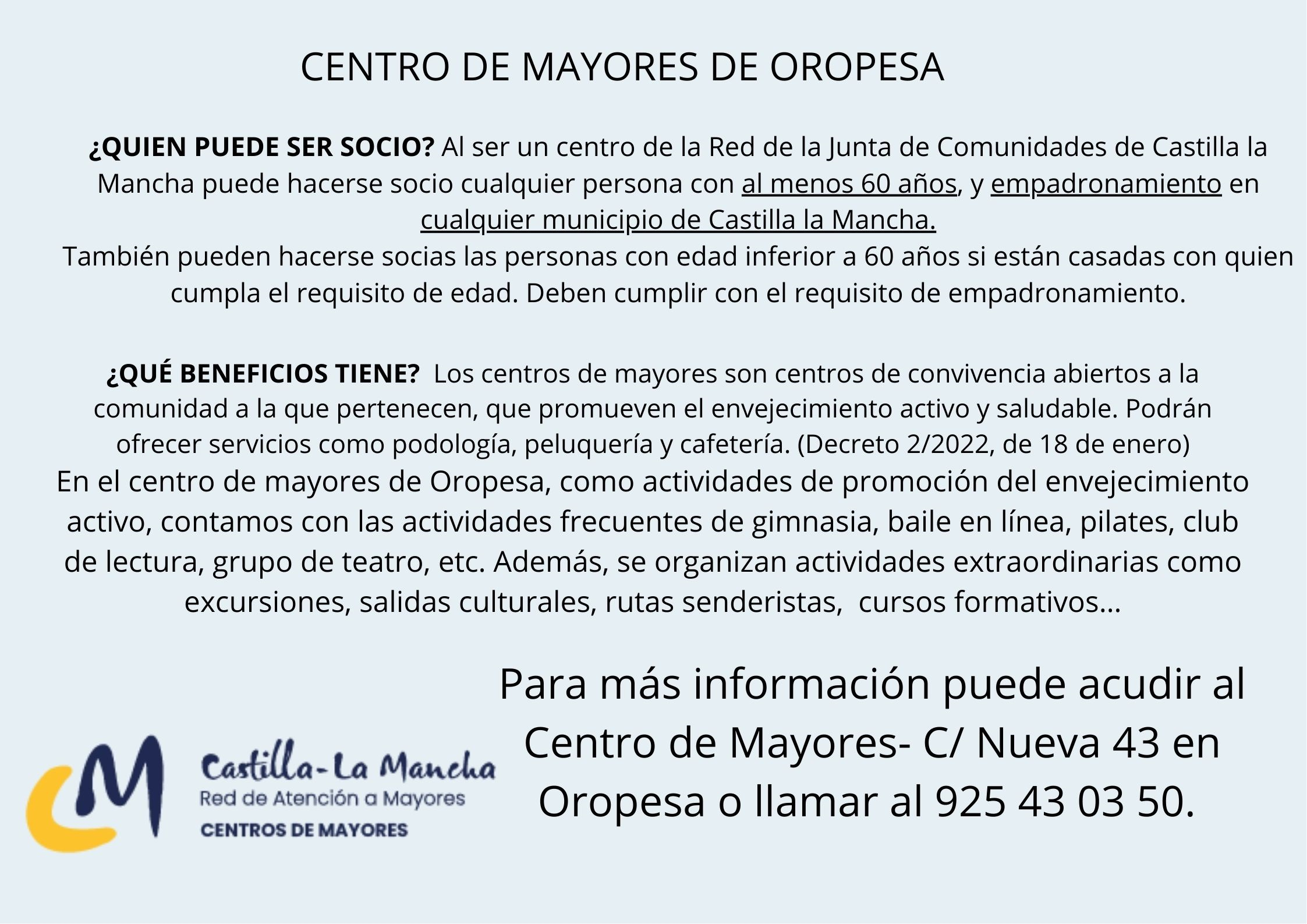 ANUNCIO DEL CENTRO DE MAYORES DE OROPESA