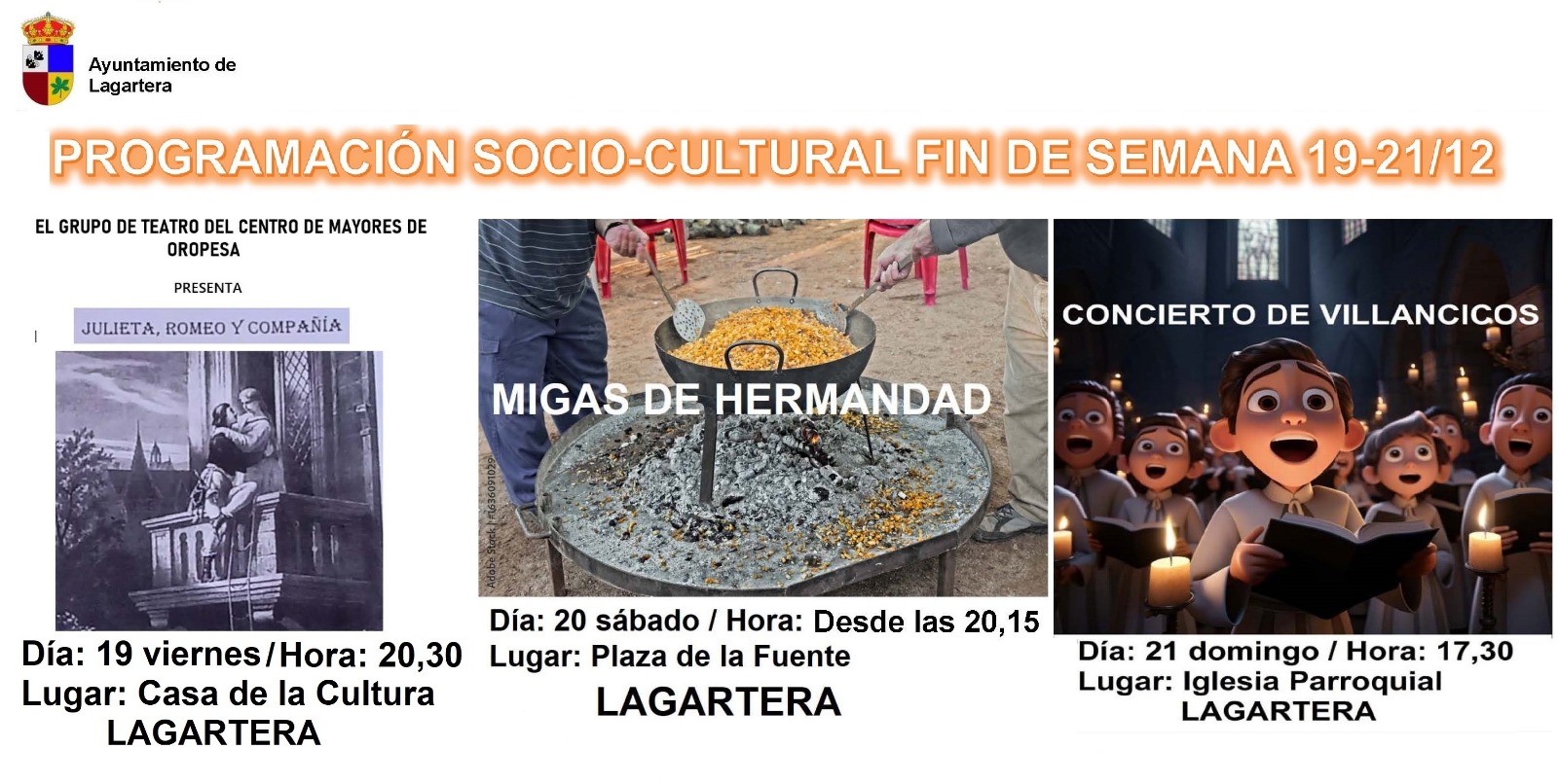 Fin de semana socio‑cultural en Lagartera: teatro, migas y villancicos