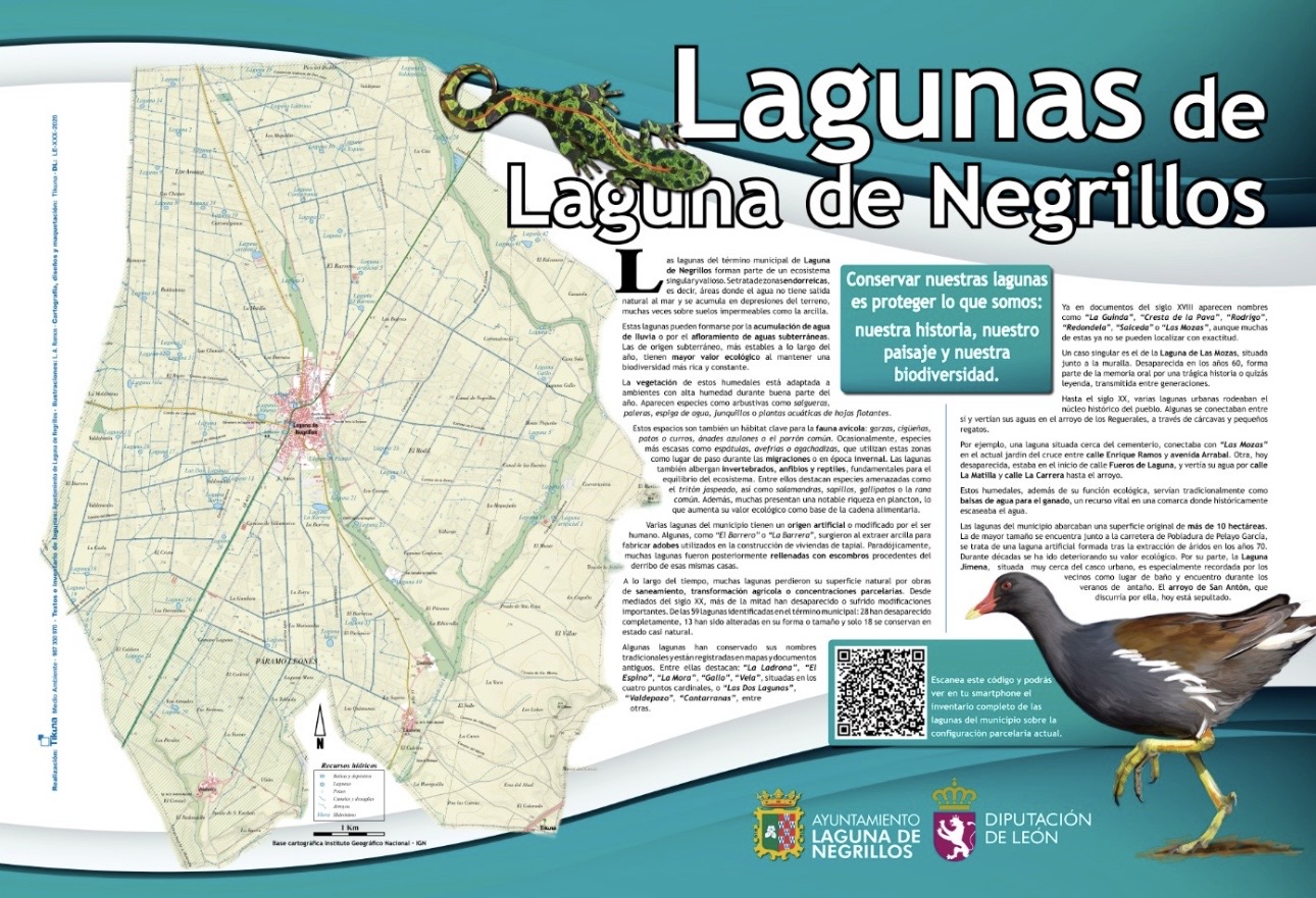 El Ayuntamiento de Laguna de Negrillos ha instalado un nuevo panel de información medio ambiental sobre las lagunas del municipio en el jardín de las inmediaciones de lo que un día fue la conocida laguna “de las mozas”.