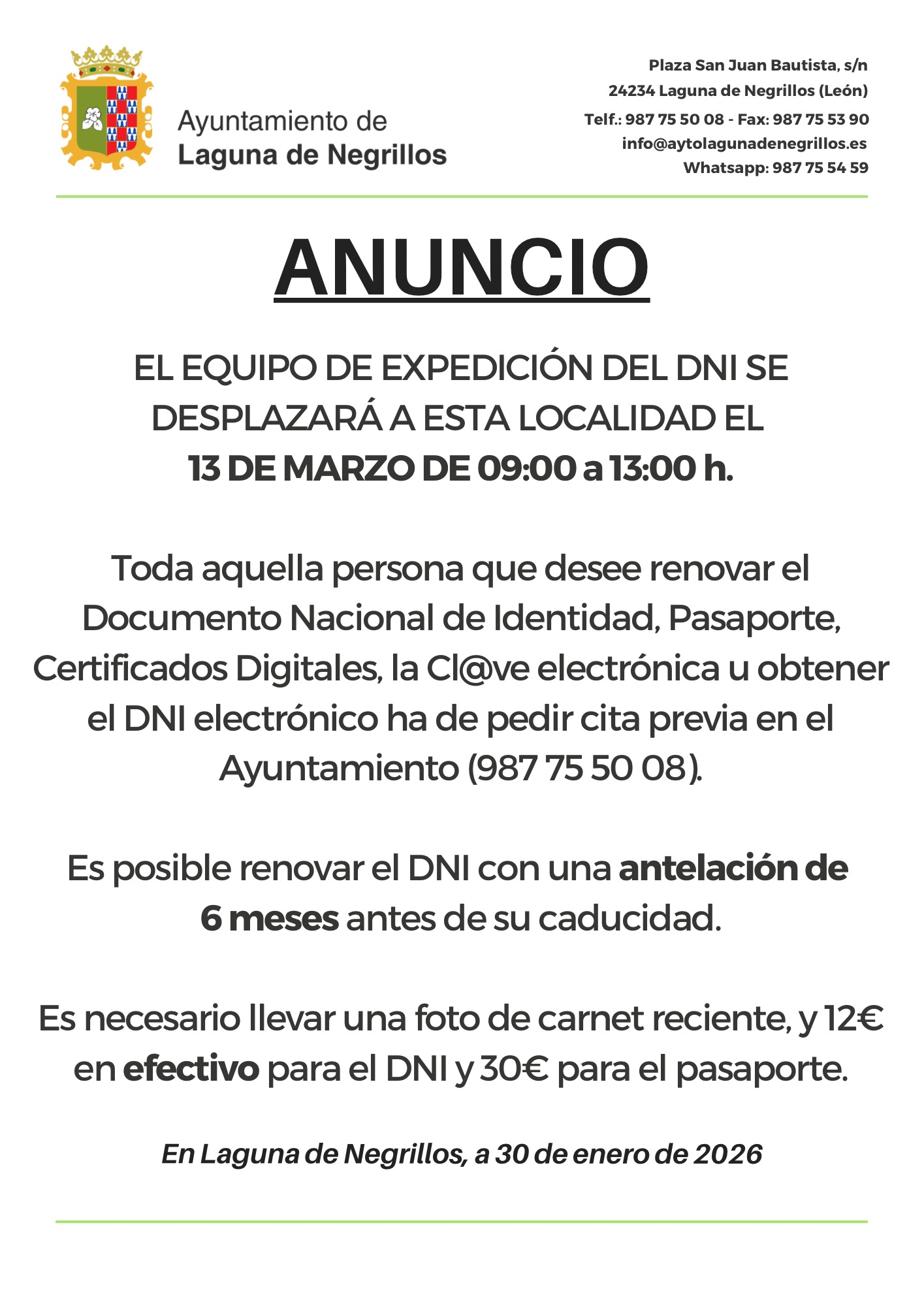 En marzo se desplazará un equipo de expedición del DNI a la localidad.