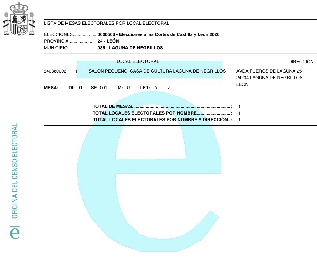 Previo a las elecciones que tendrán lugar el próximo 15 de marzo de 2026, informamos que en esta ocasión habrá una sola mesa electoral y a diferencia de otras veces, el local electoral no será como tradicionalmente viene siendo el Colegio Público sino que será el SALÓN PEQUEÑO DE LA CASA DE CULTURA.