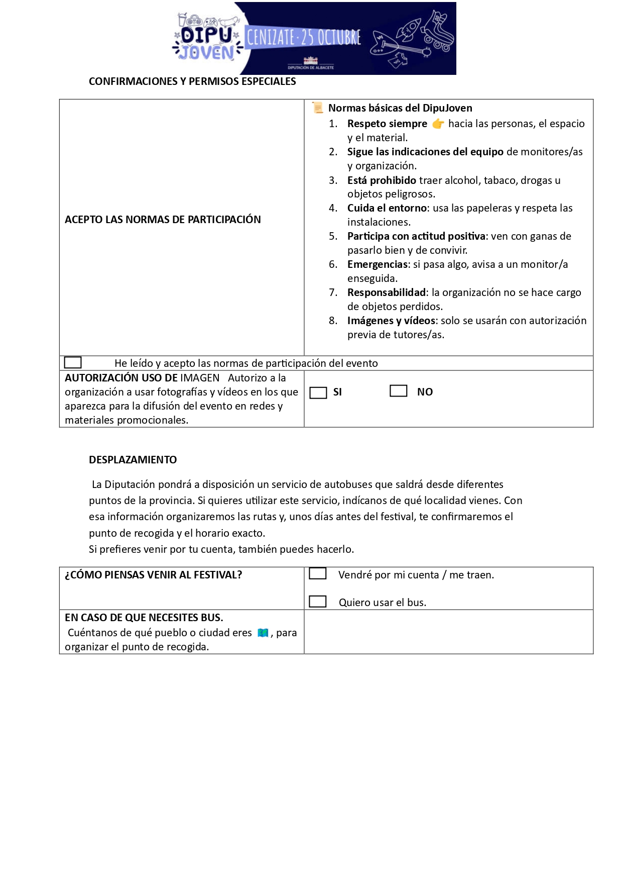 Habrá varios puntos en la provincia para recogida y regreso de los participantes sin coste alguno, para la asistencia a cada uno de los eventos.
