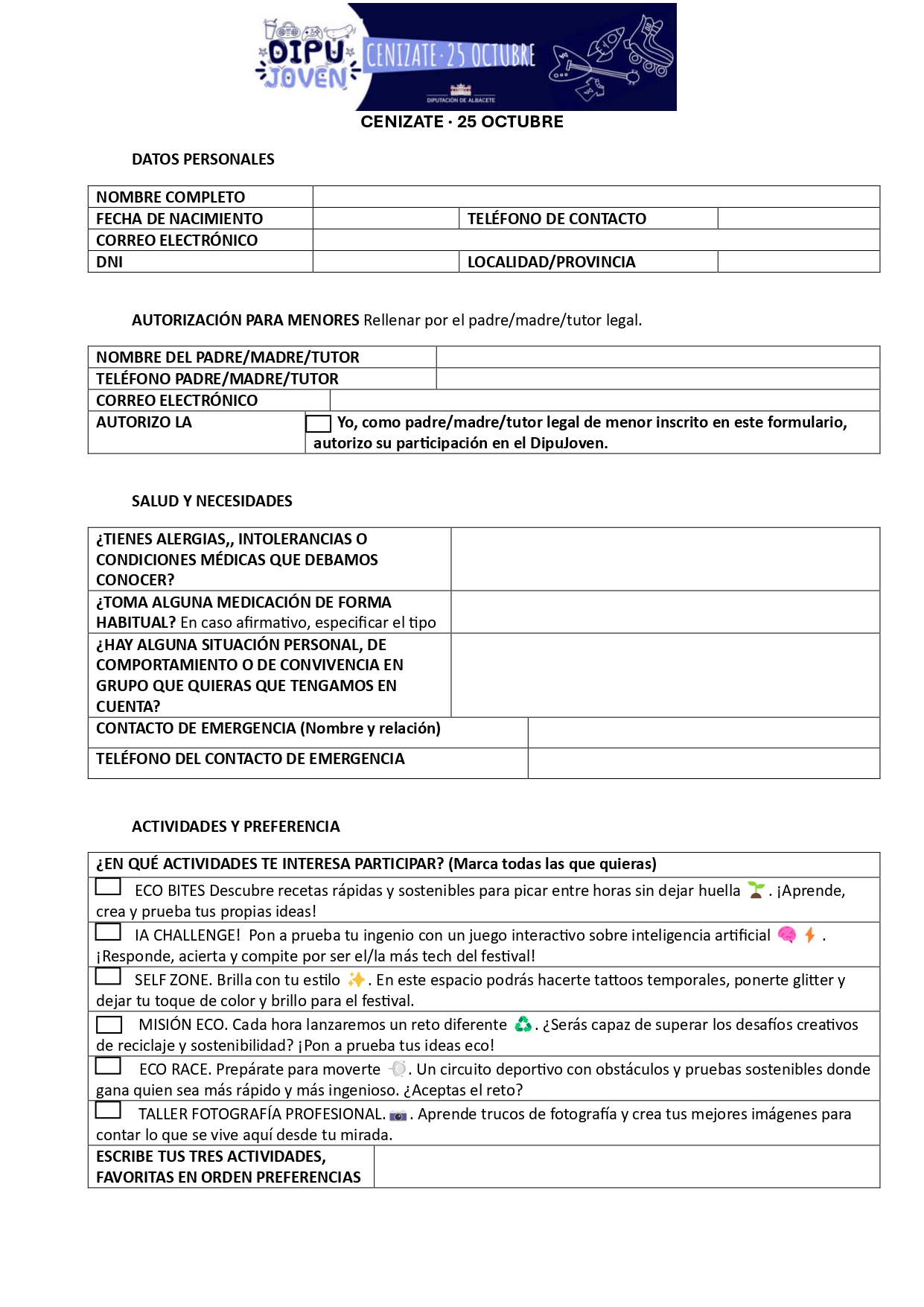 - HIGUERUELA: https://forms.gle/WvZ2GT9WoQbCqNgo7