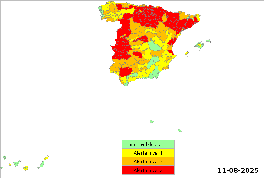 -Nivel de riesgo “3”, alto (rojo): en las zonas de meteosalud: Meseta cacereña, Tajo y Alagón,Norte de Cáceres (...)