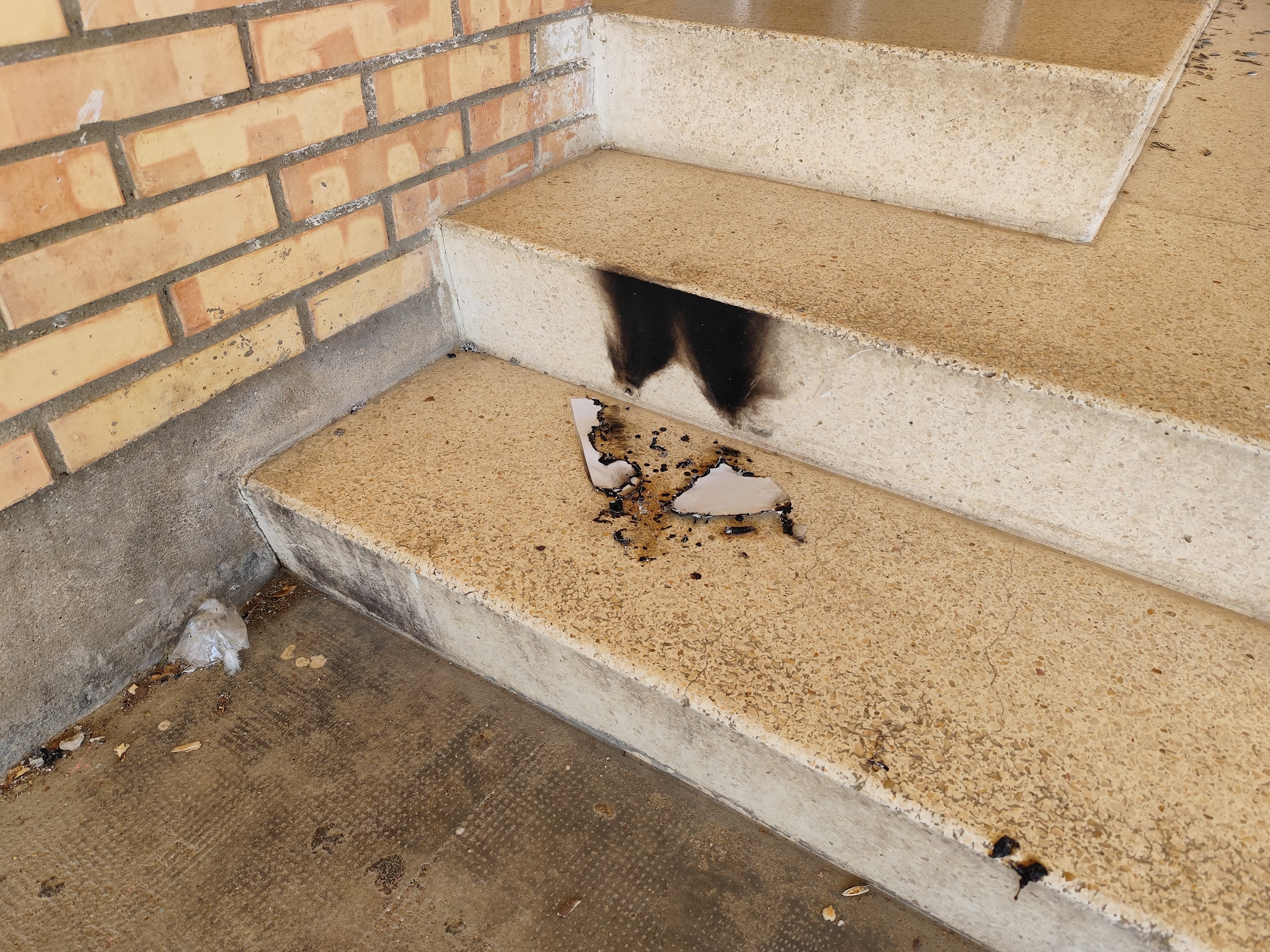 Lamentamos comunicar que este fin de semana se han producido nuevos actos vandálicos en el Centro Cívico, donde se ha quemado y ensuciado el porche que también forma parte del recreo del colegio.