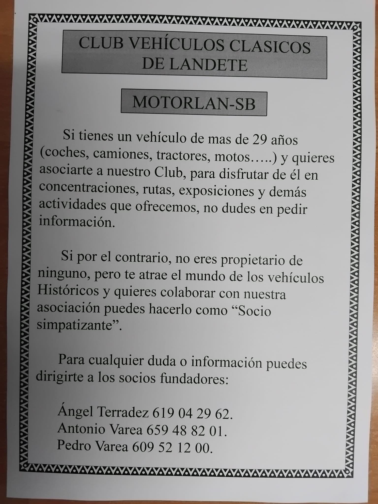 CREACIÓN NUEVO CLUB DE VEHICULOS CLASICOS DE LANDETE (MOTORLAN-SB)2025-07-08 13:08:52INFORMACIÓN GENERALSe ha creado una asociación cultural centrada en los Vehículos Clásicos para todos los amantes del motor.
