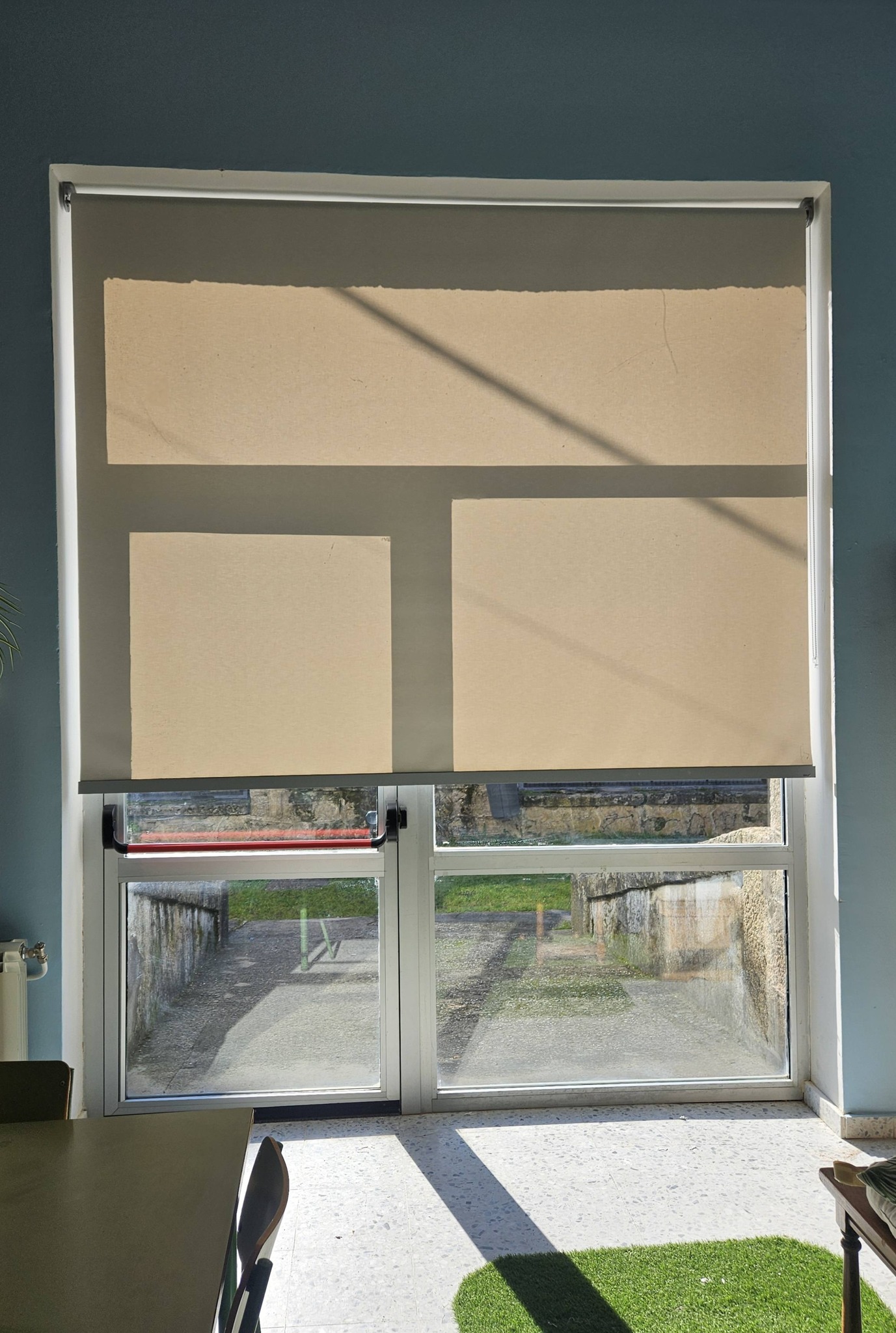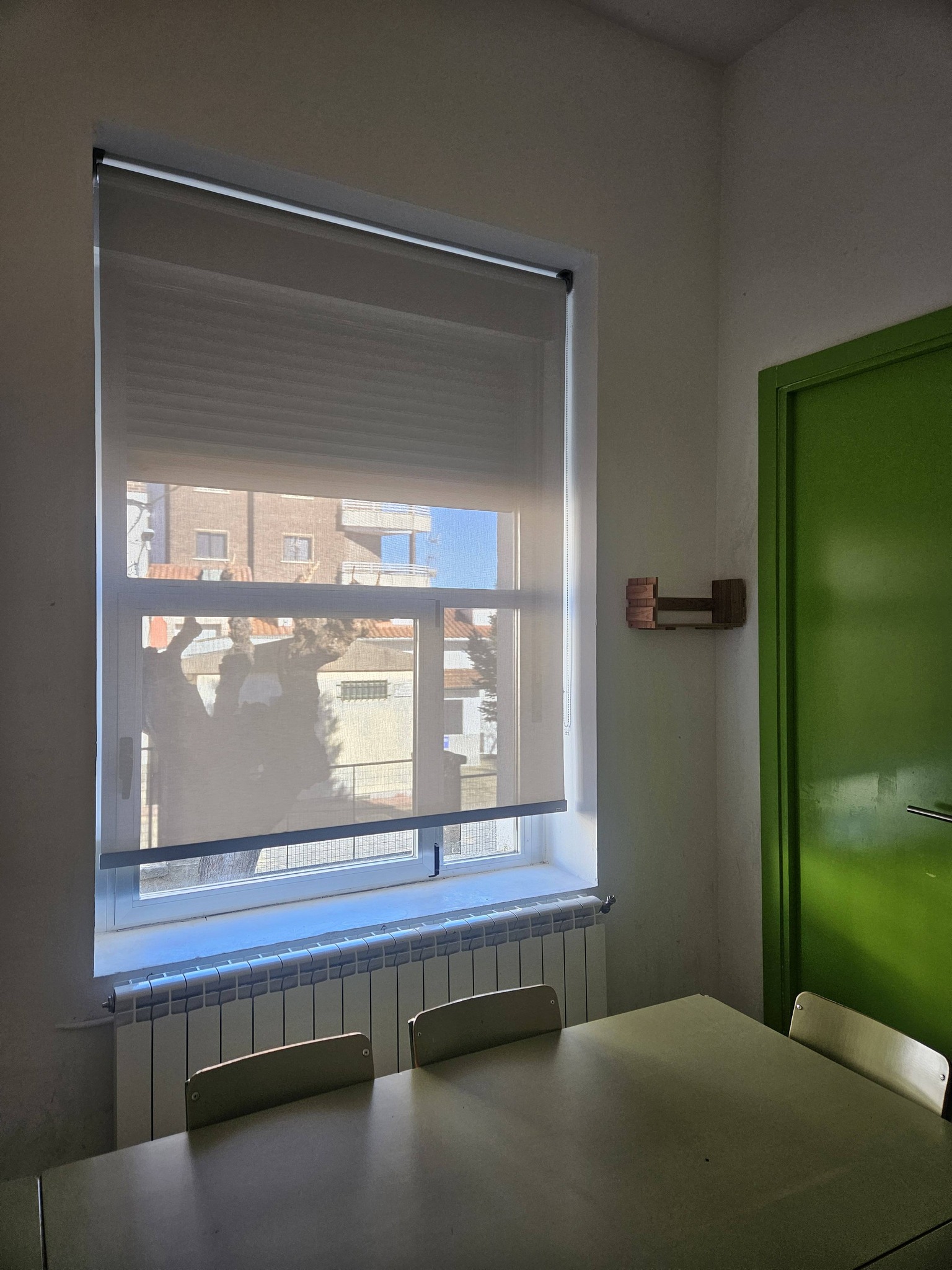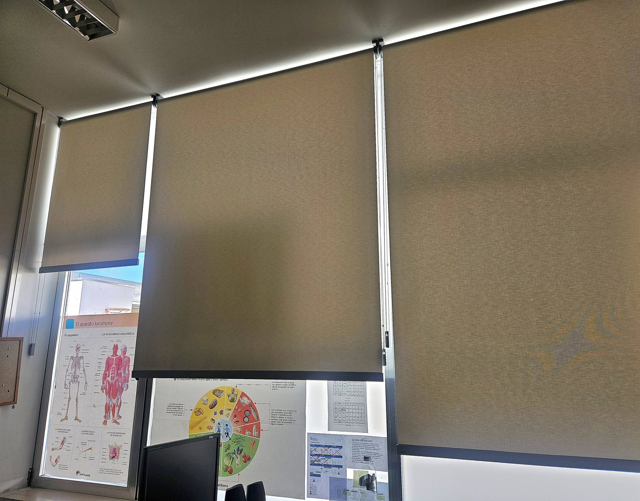 La primera de dichas actuaciones consiste en la instalación de estores en aquellas ventanas que carecen de persianas o cortinas, es decir, en las del aula de música, el aula de apoyo y la biblioteca.