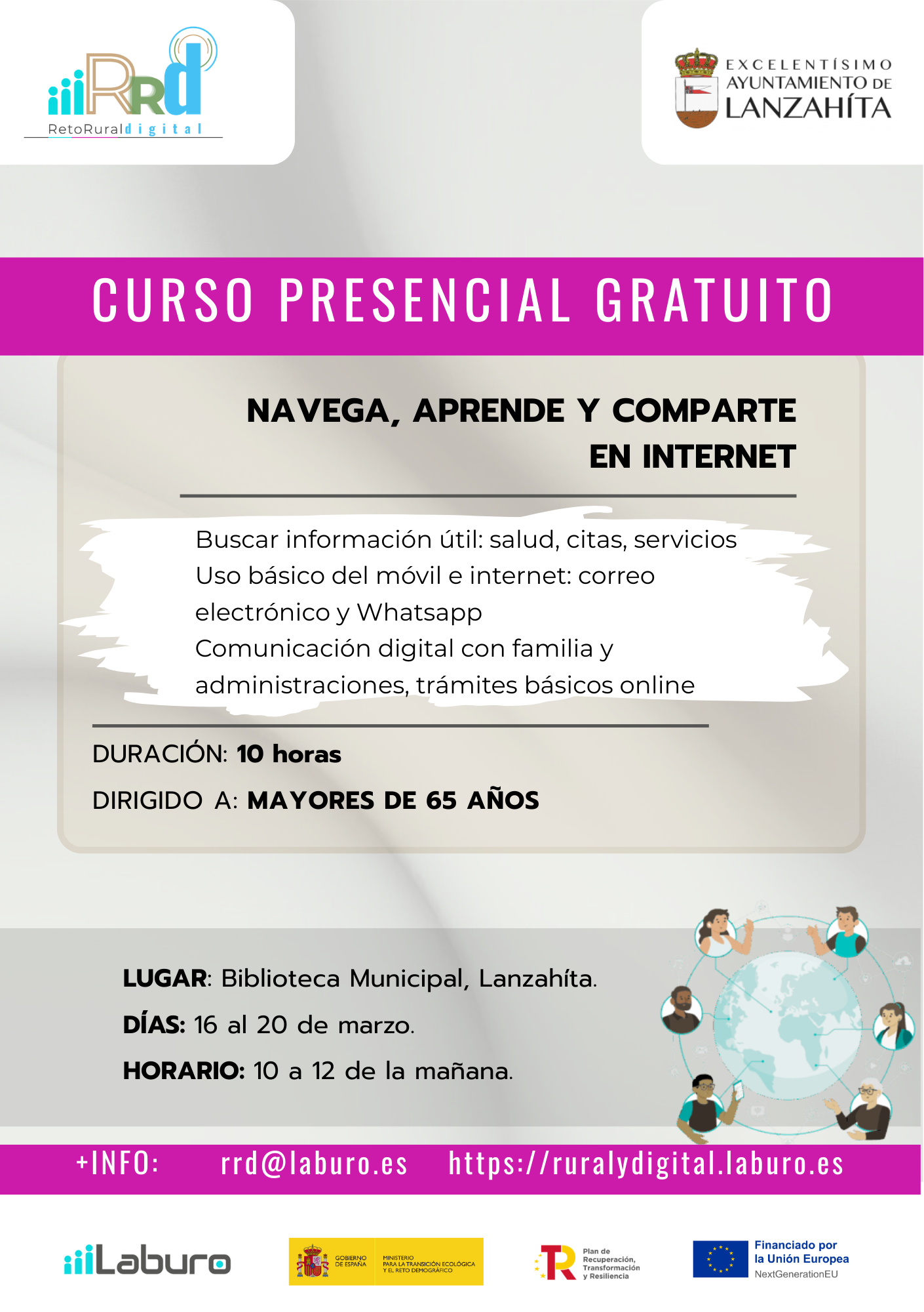 CURSOS GRATUITOS PARA MAYORES DE 65 AÑOS.