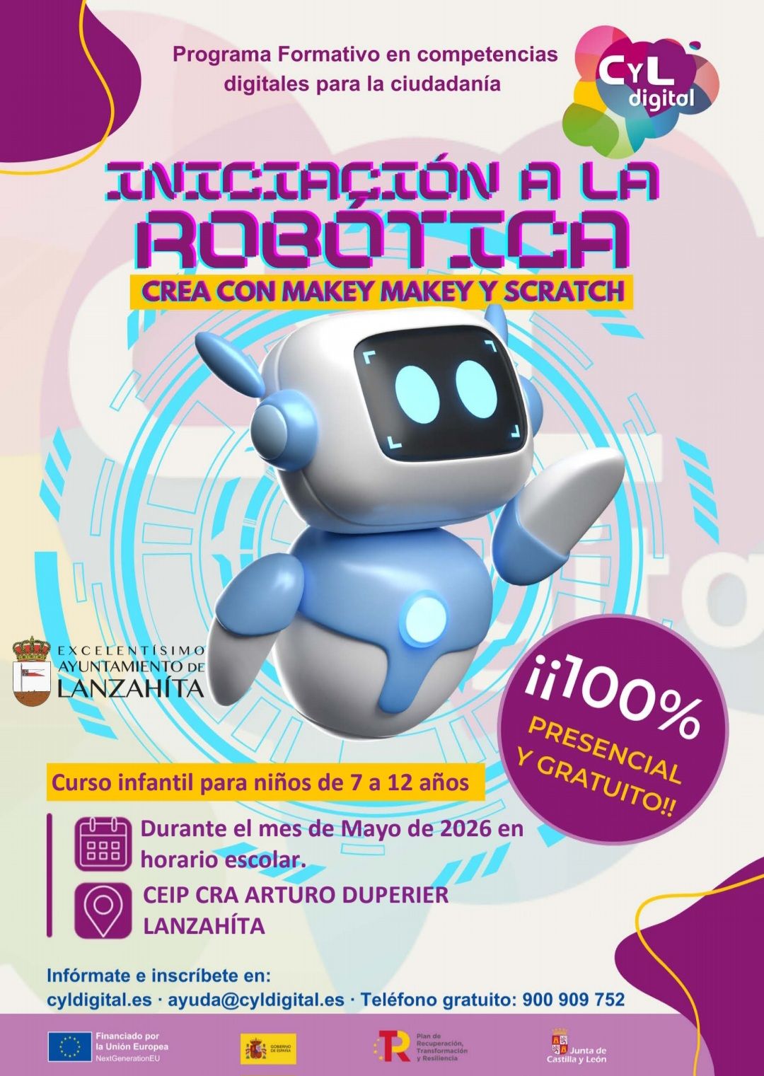 Hoy, os informamos de otro curso de CyL digital que se desarrollará también en mayo, pero que en este caso se impartirá en en el colegio municipal en horario lectivo para que todos los niños y niñas de primaria puedan beneficiarse de él.
