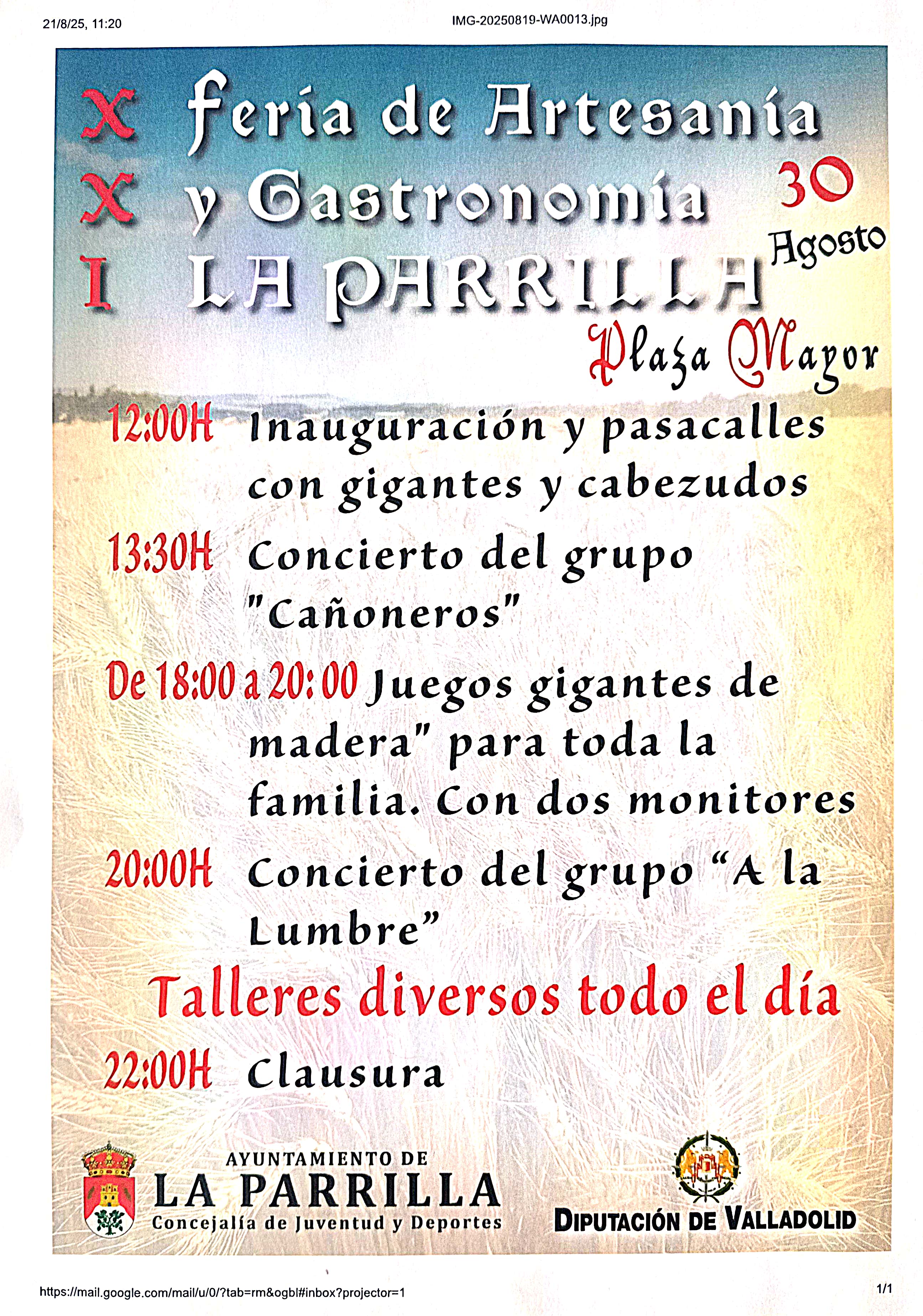 Os recordamos a todos la cita que tenemos a la 12:00 del mediodía para dar pistoletazo de salida a la XXI Edición de La feria de artesanía .