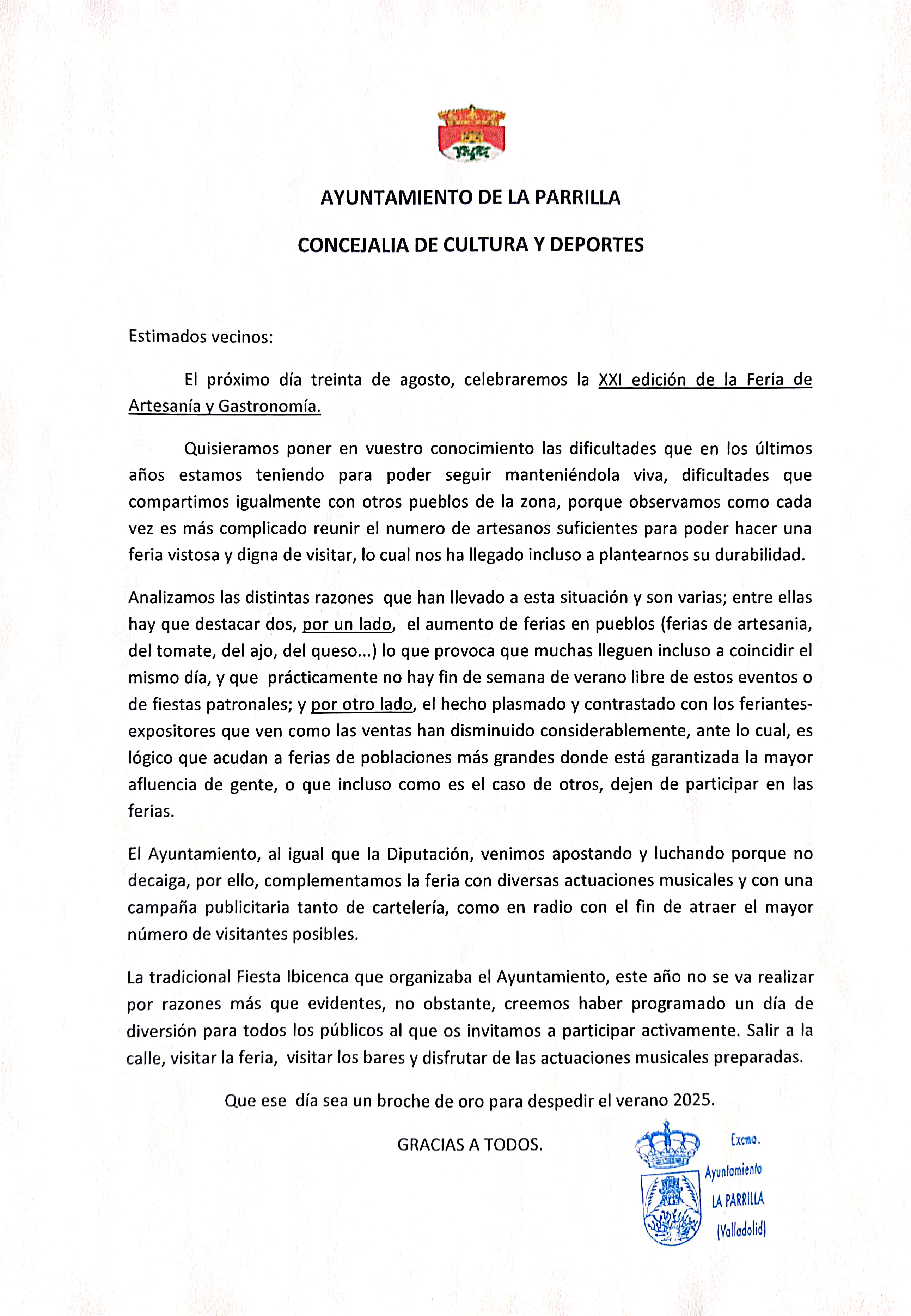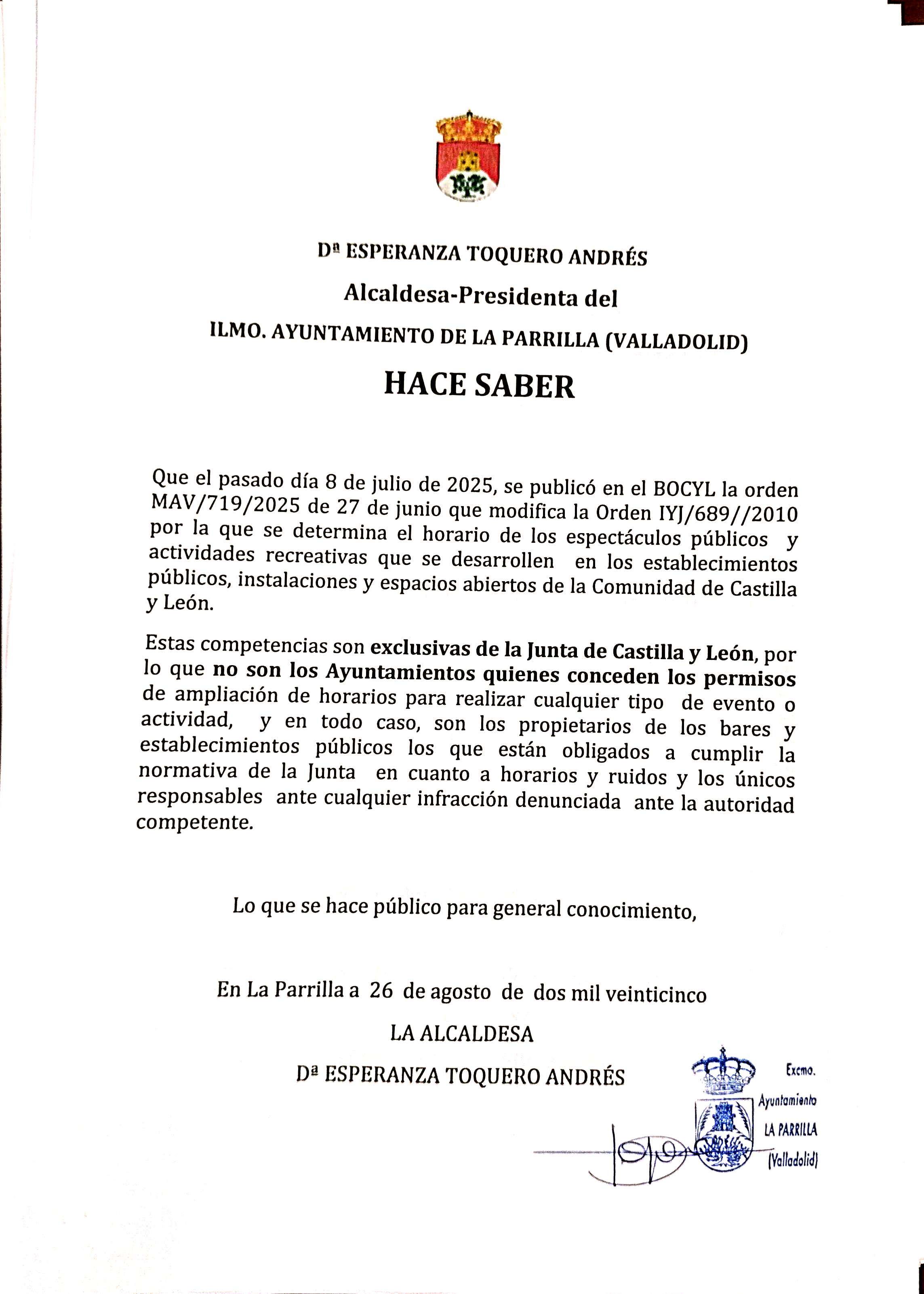 Adjuntamos bando de alcaldía.