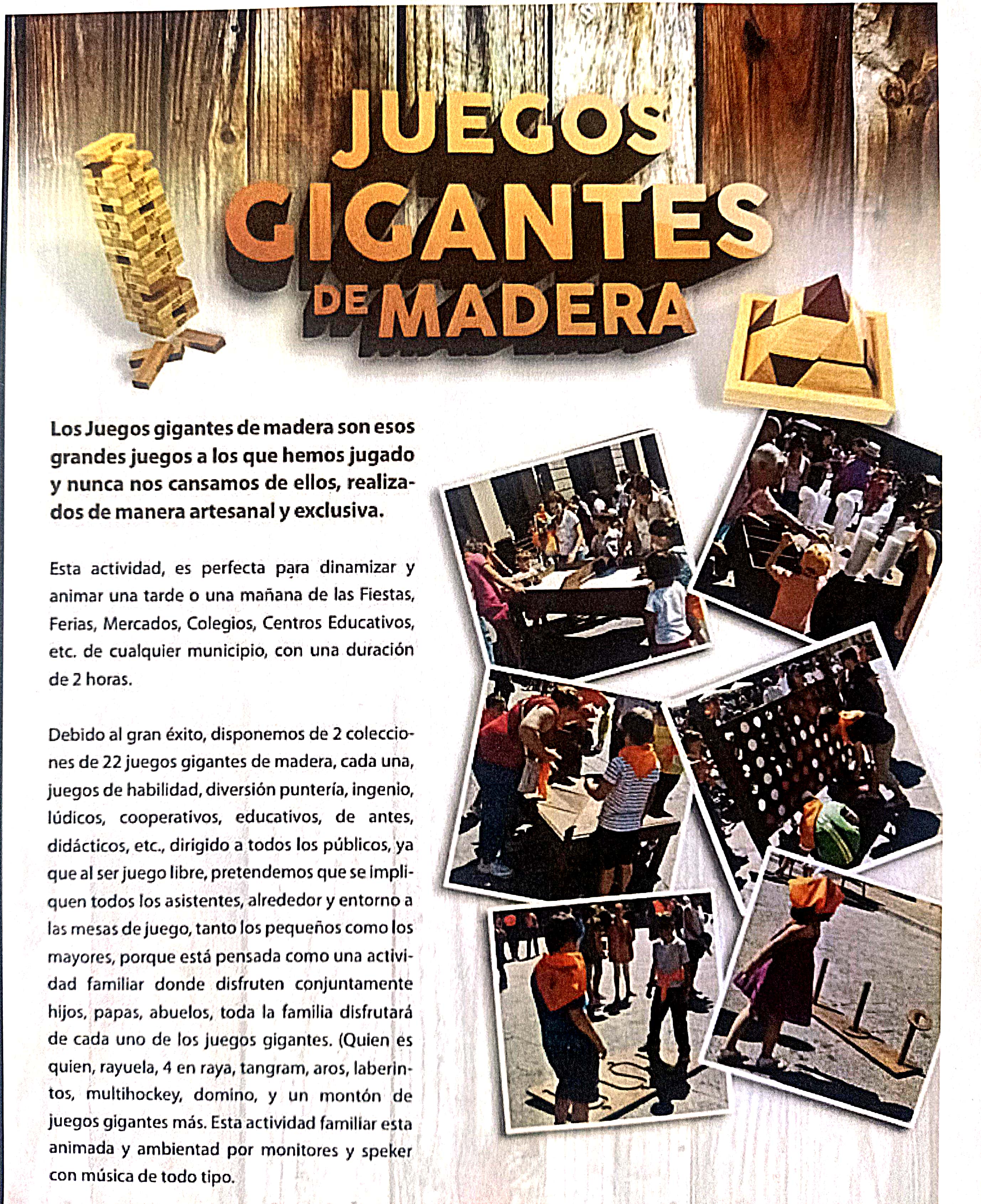 Adjuntamos carta de presentación, cartel de la feria y de la actividad que se llevará a cabo junto con diversos y variados talleres artesanales de Juegos Gigantes de Madera.