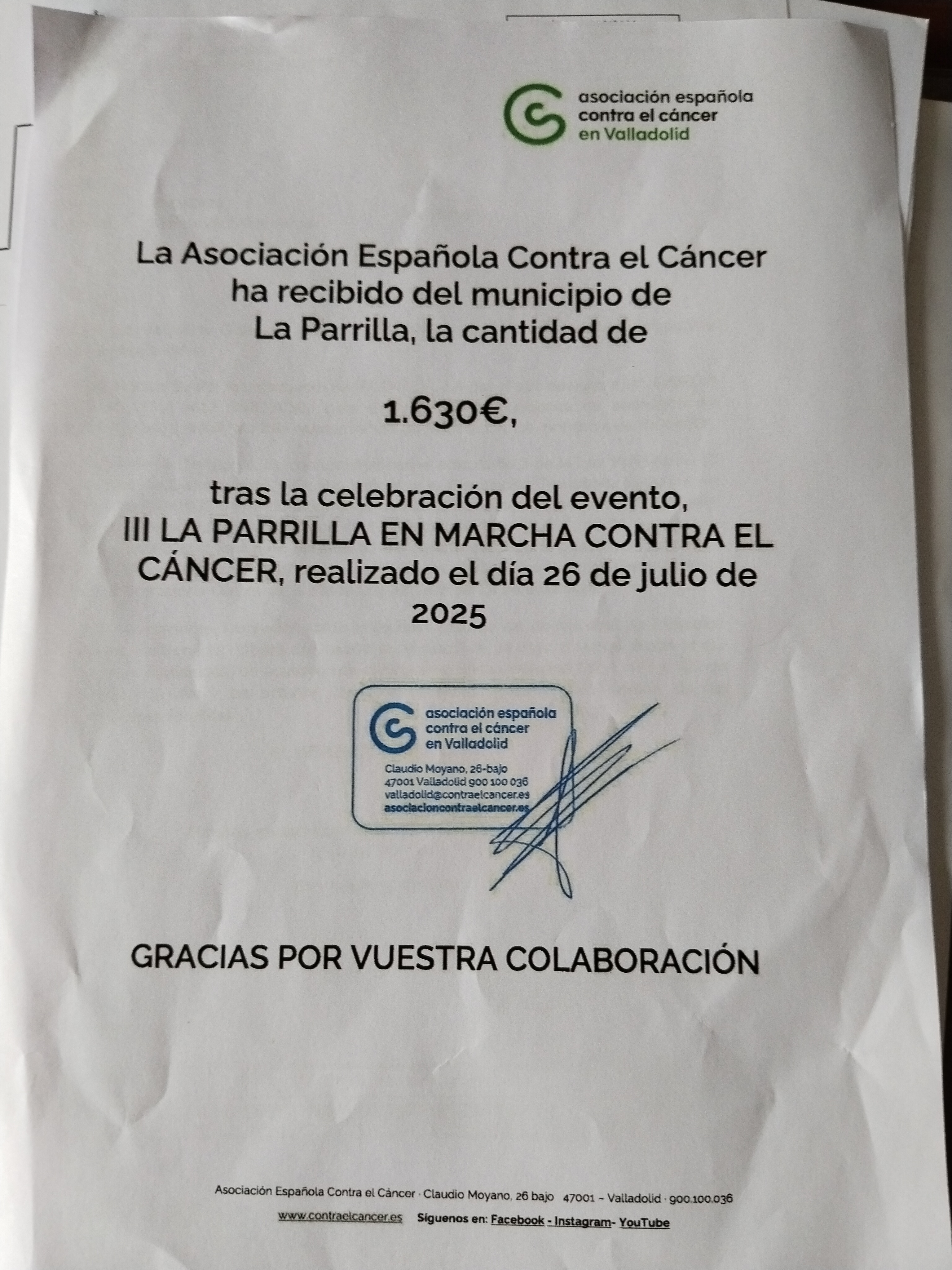 Nos agradecen a todos los ayuntamientos y vecinos de pueblos de la mancomunidad la colaboración y ayuda prestada .
