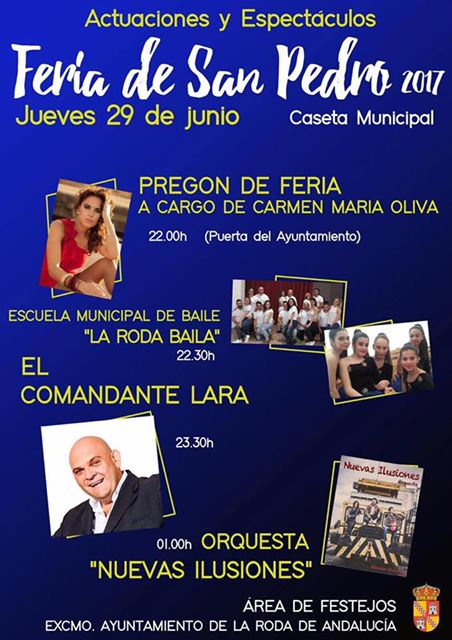 Hoy arranca la Feria de San Pedro 2017 de La Roda de Andalucia. Os dejamos el cartel con las actuaciones y actividades que podréis encontrar a lo largo del día de hoy.