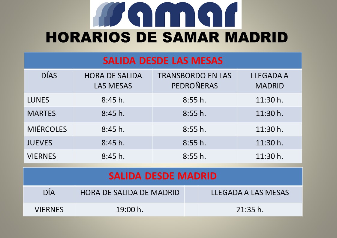HORARIO SALIDA DEL SAMAR DIRECCION LAS MESAS-MADRID Y MADRID-LAS MESAS