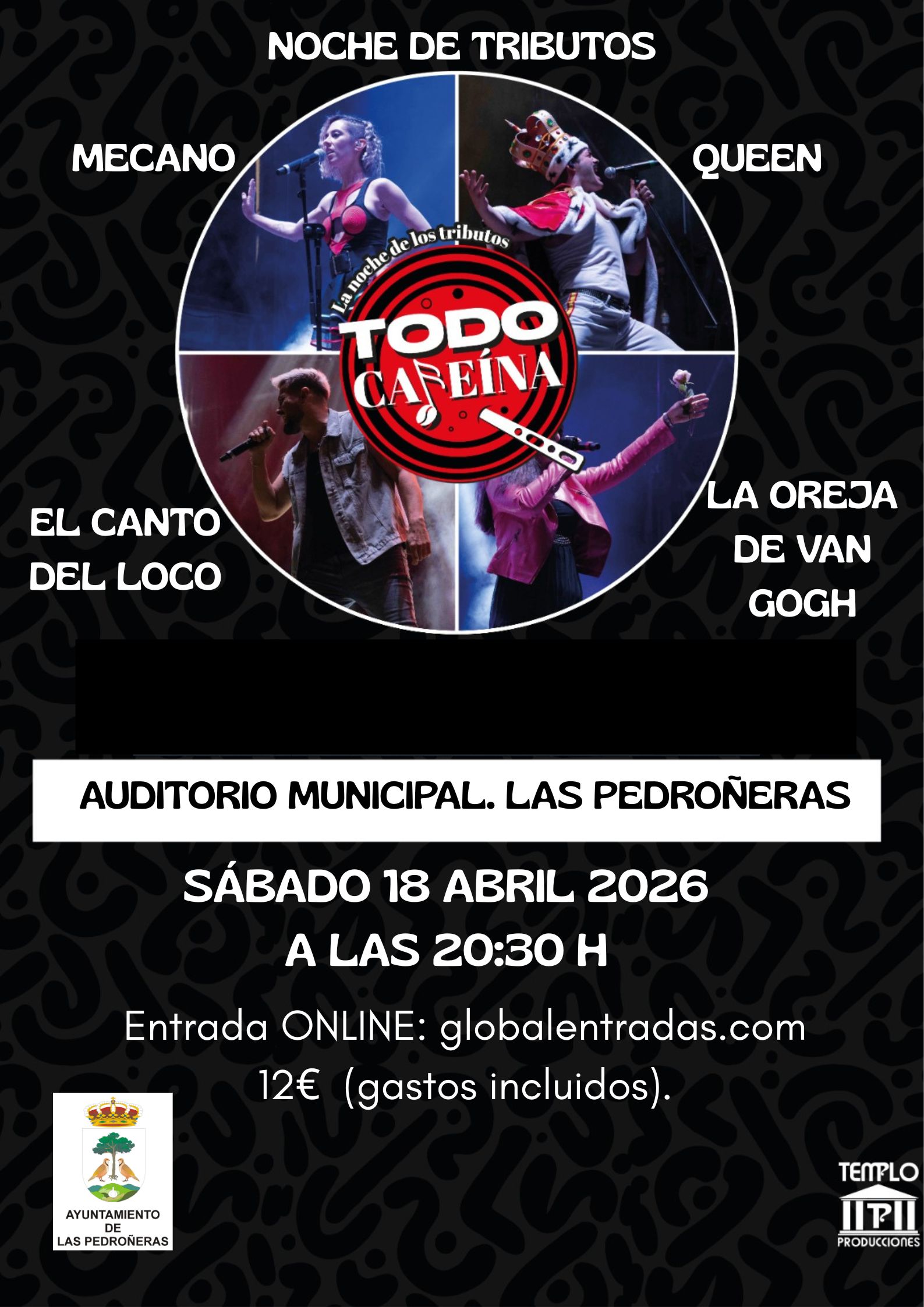 Dentro de la programación cultural de primavera, el sábado 18 de abril a las 20:30 h "NOCHE DE TRIBUTOS", en el Auditorio Municipal". "TODO CAFEÍNA” .