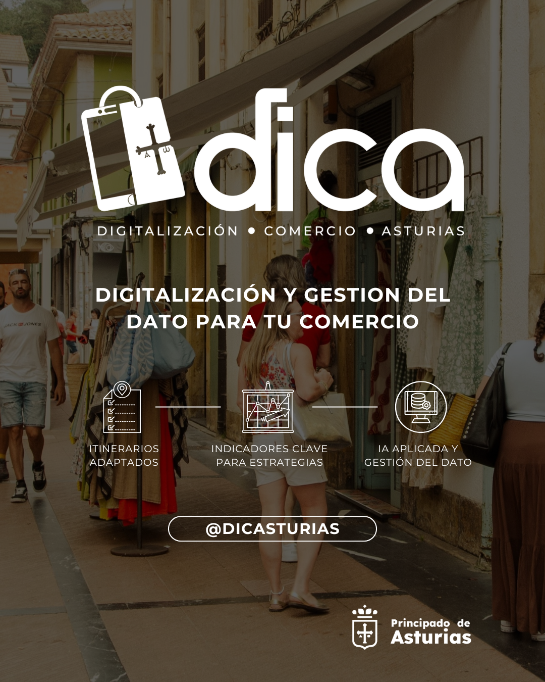 Desde el Ayuntamiento de Las Regueras difundimos el Programa DICA, una iniciativa de la Consejería de ciencia, Industria y Empleo del Principado de Asturias, que impulsa la digitalización del pequeño comercio asturiano ofreciéndoles acompañamiento con itinerarios adaptados, con indicadores claros, IA aplicada y gestión del dato accesible.