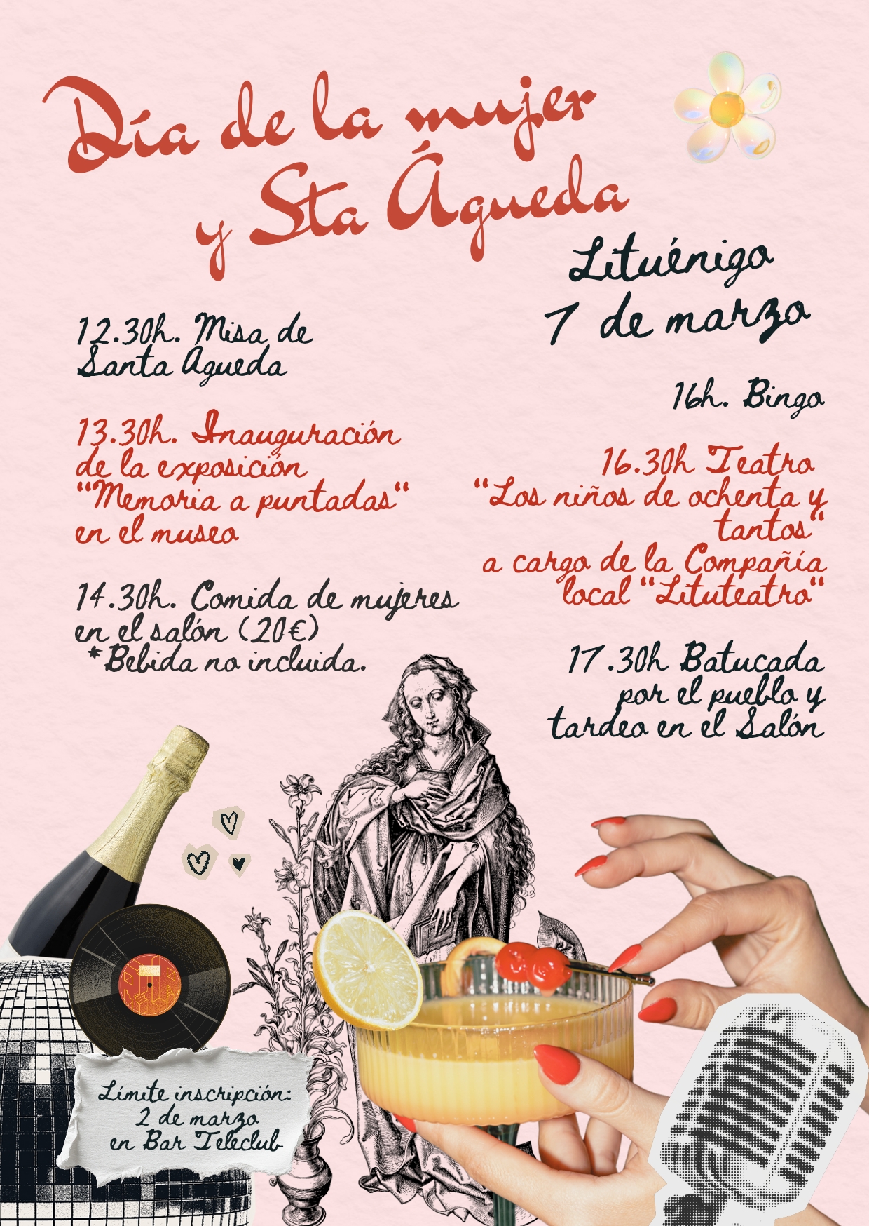 Se hace saber que el próximo 7 de marzo tendrá lugar en Lituénigo la celebración del Día de la Mujer y Santa Águeda, con el siguiente programa de actos: