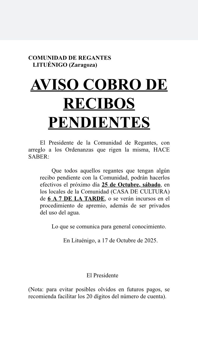 Que desde hoy y hasta el día 22.11.2025, todo vecino interesado en adquirir lote de leña deberá apuntarse en el Ayuntamiento. Igualmente se comunica que el reparto, tras el pago del coste del lote, se realizará el día 22.11.2025 en los bajos del Ayto.