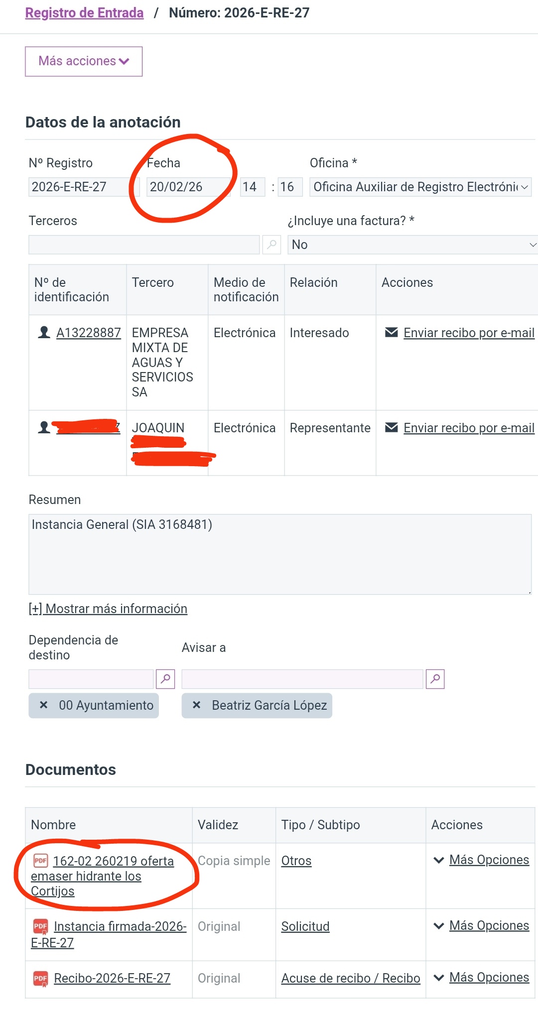 Pero de unos meses para acá ya pedimos a la empresa de aguas que estudiase donde poder instalar un hidrante, ya que tiene que ser en una tubería general, que tiene más sección y más presión, y de los posibles lugares que nos dijeron, se (...)