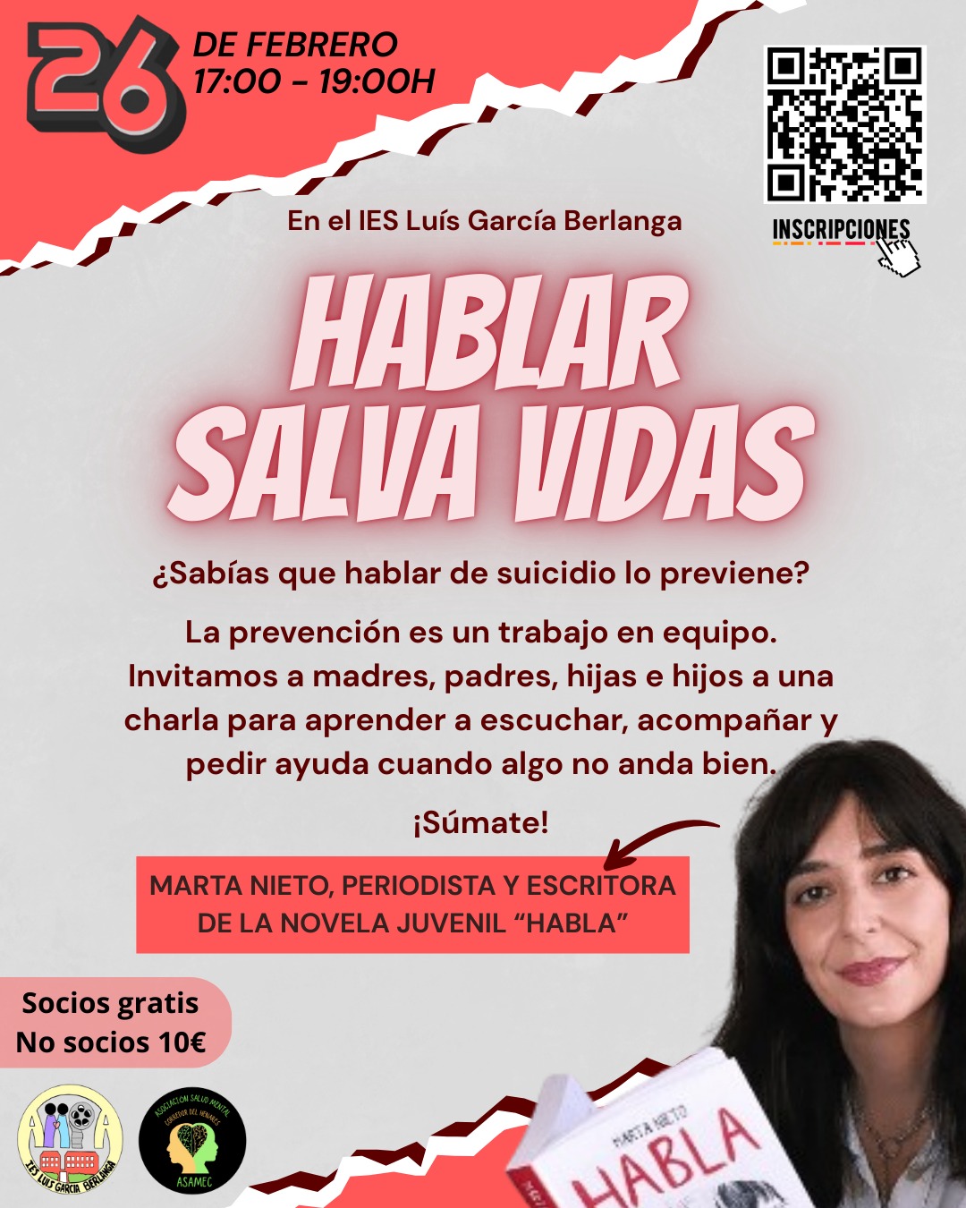 Te invitamos a una charla imprescindible para familias, jóvenes y educadores. Un espacio para aprender a escuchar, acompañar y pedir ayuda cuando las cosas se ponen difíciles. Porque la prevención es, por encima de todo, un trabajo en equipo. 🤝❤️