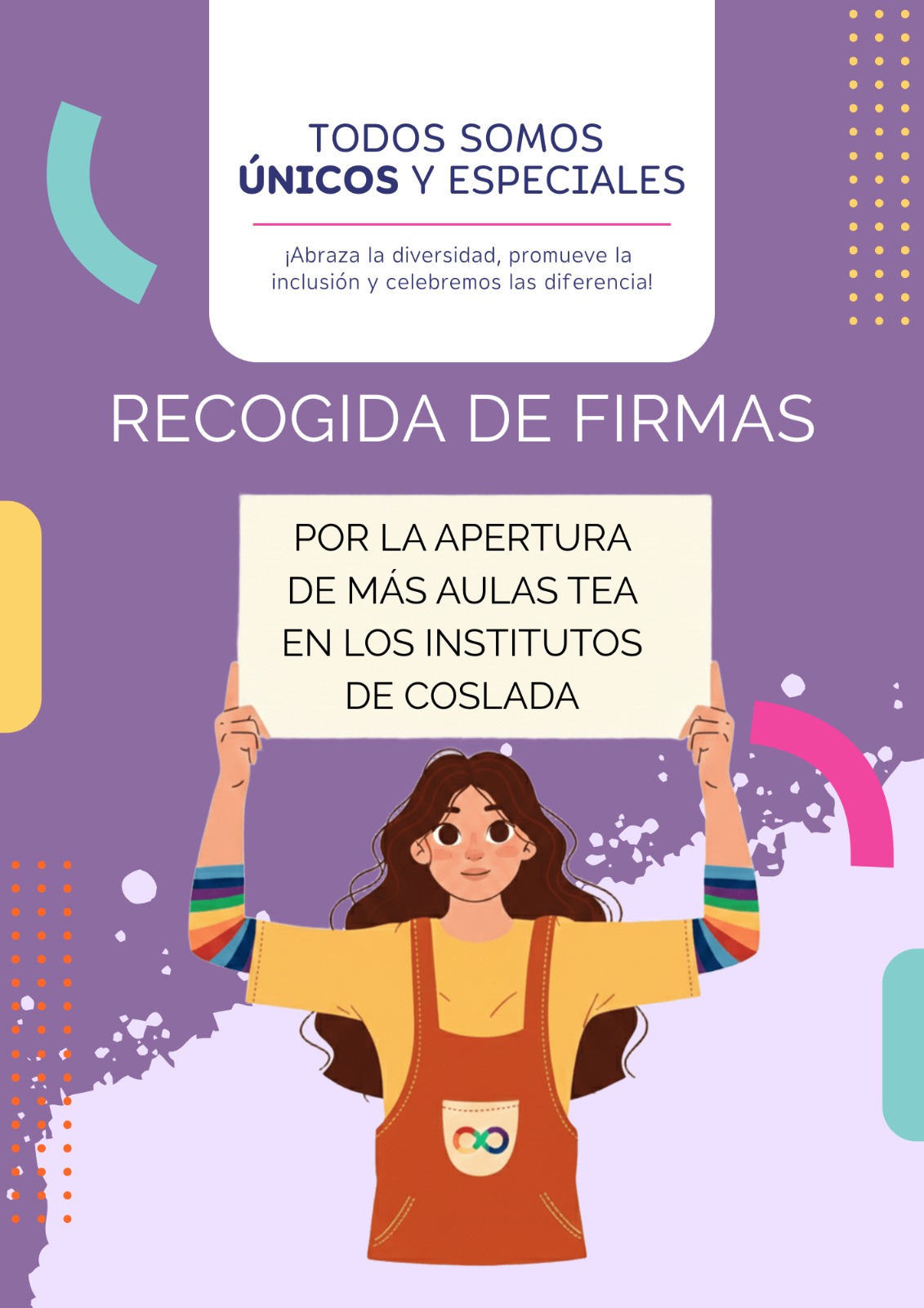 Os informaros que vamos a realizar una recogida de firmas junto con todas las AMPA de Coslada y otras entidades para solicitar a la Dirección de Área Territorial Este que pongan un aula TEA (aula para niños/as con Trastorno del Espectro Autista) en cada centro de secundaria o al menos en los institutos donde están adscritos los colegios que tienen dicha aula.