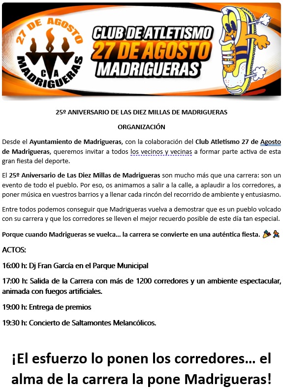 XXV EDICIÓN LAS 10 MILLAS DE MADRIGUERAS 2026