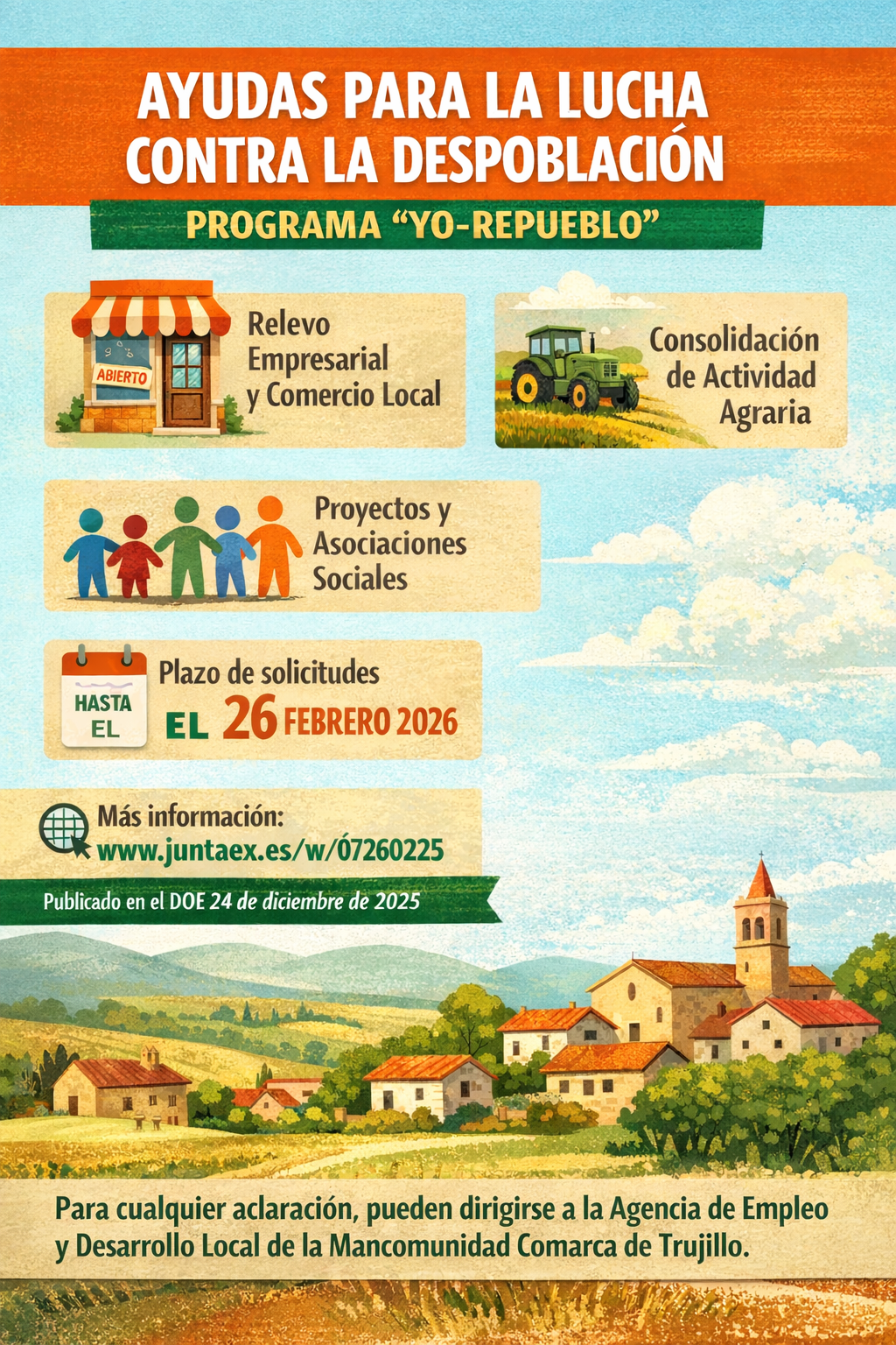 📢 AYUDAS PARA LA LUCHA CONTRA LA DESPOBLACIÓN – PROGRAMA “YO-REPUEBLO”2026-01-22 14:10:45Info General