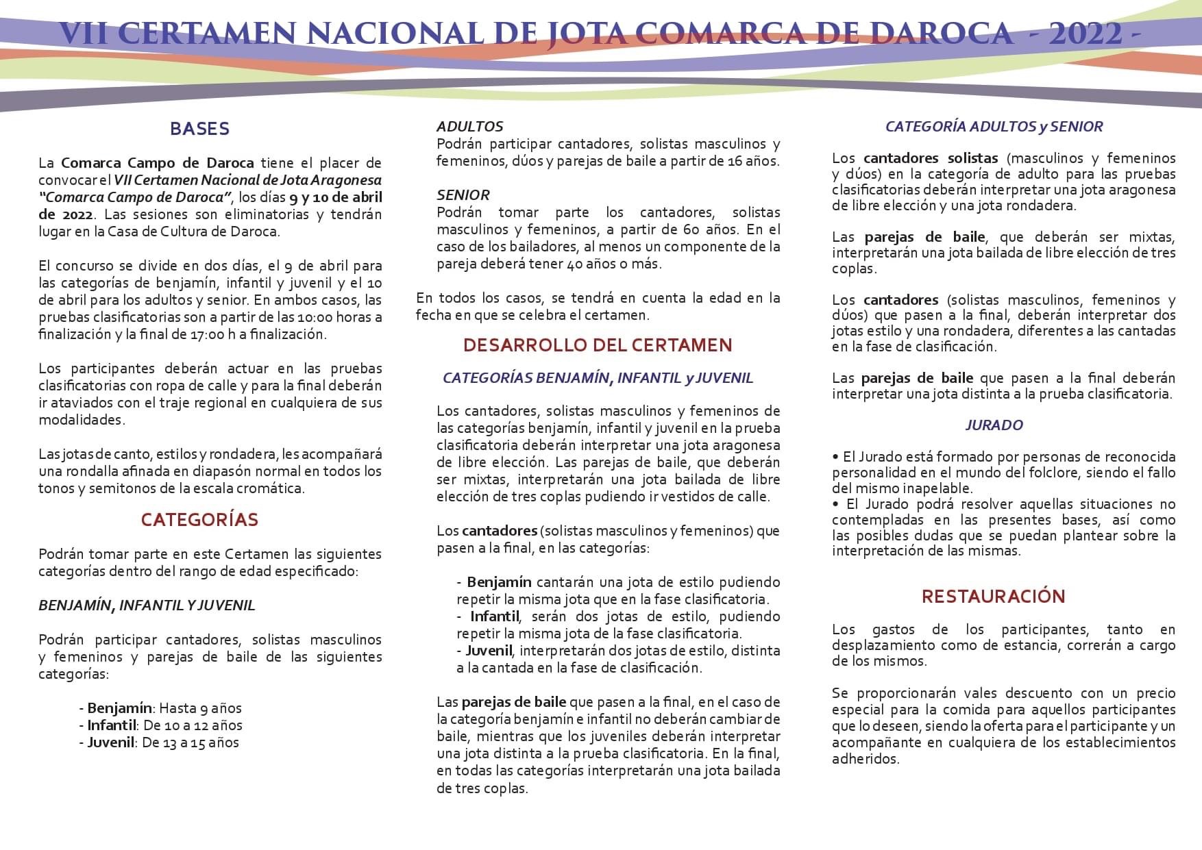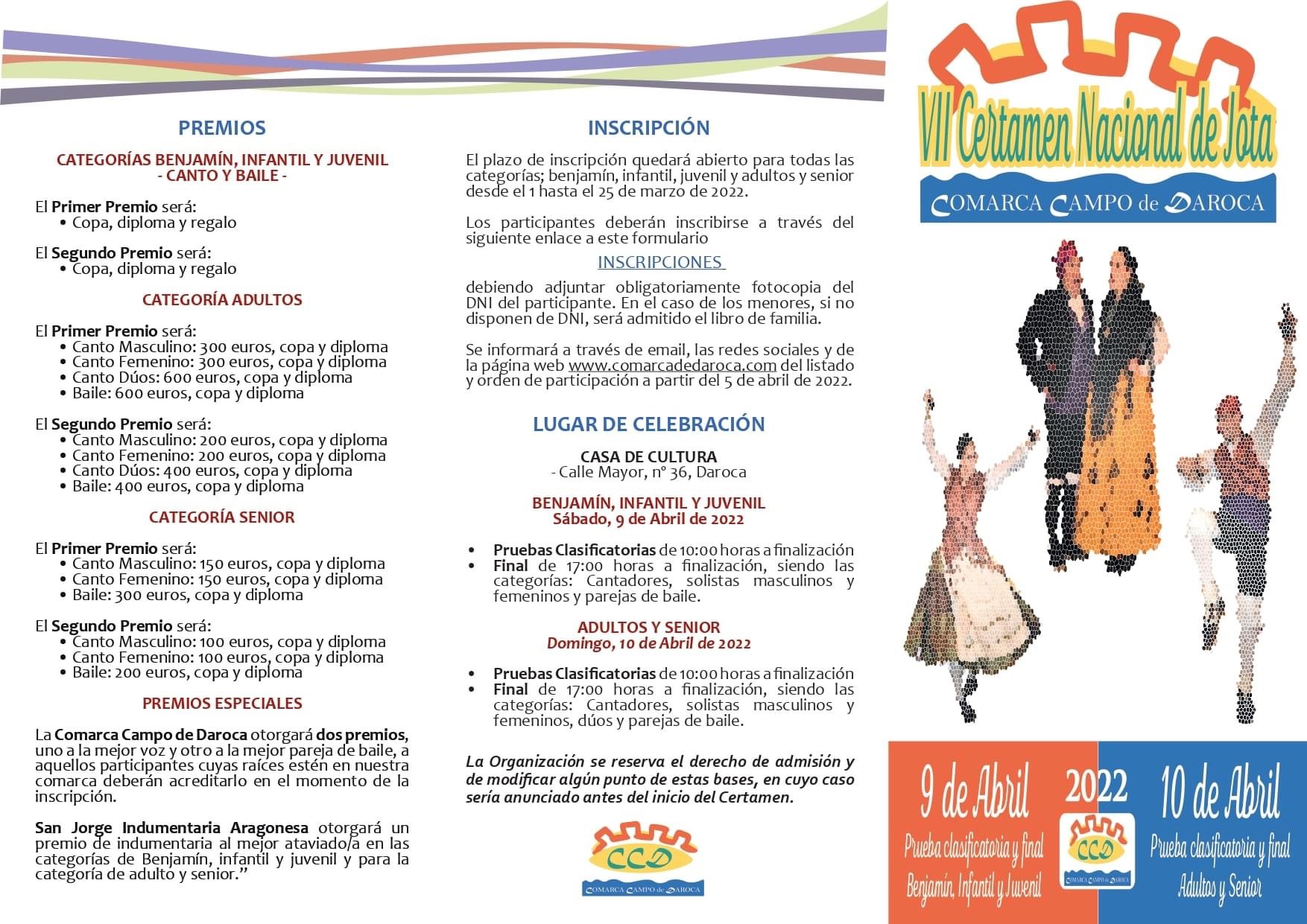 VII Certamen Nacional de Jotas Comarca Campo de Daroca2022-03-23 15:59:44Comarca Campo de Daroca- La Comarca Campo de Daroca amplía el plazo de inscripción para su VII Certamen Nacional de Jotas.