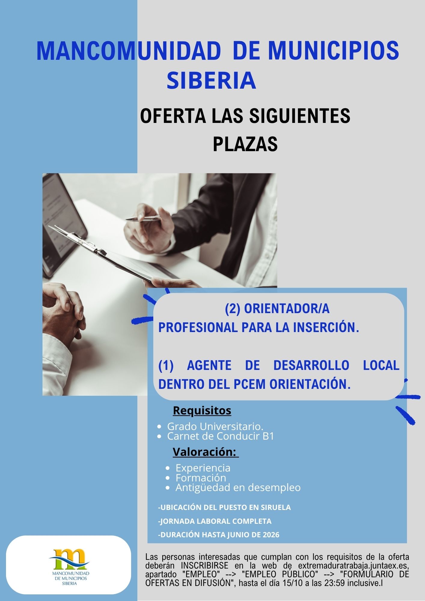 Mancomunidad de Municipios Siberia OFERTA 3 plazas dentro del PCEM ORIENTACIÓN
