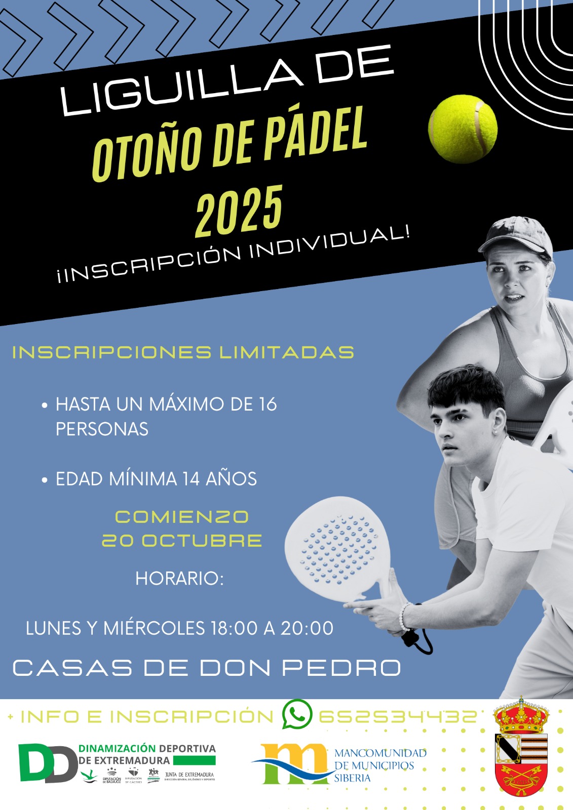 El SERVICIO DE DINAMIZACION DEPORTIVA de Mancomunidad de Municipios Siberia ofrece OTOÑO DE PÁDEL