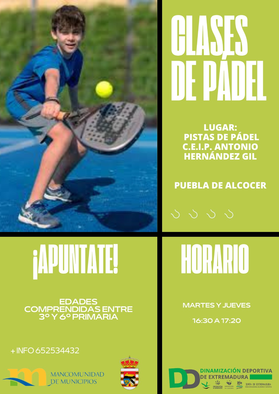 El SERVICIO DE DINAMIZACION DEPORTIVA de Mancomunidad de Municipios Siberia ofrece CLASES DE PADEL