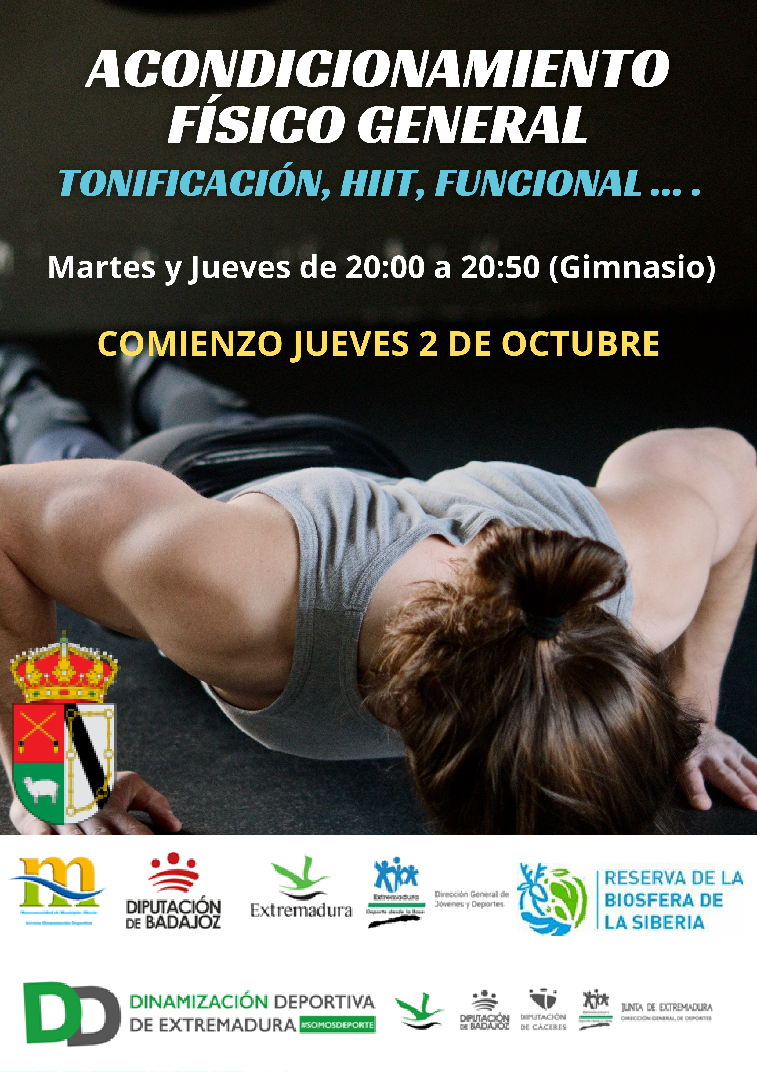 El SERVICIO DE DINAMIZACION DEPORTIVA de Mancomunidad de Municipios Siberia ofrece ACONDICIONAMIENTO FISICO GENERAL