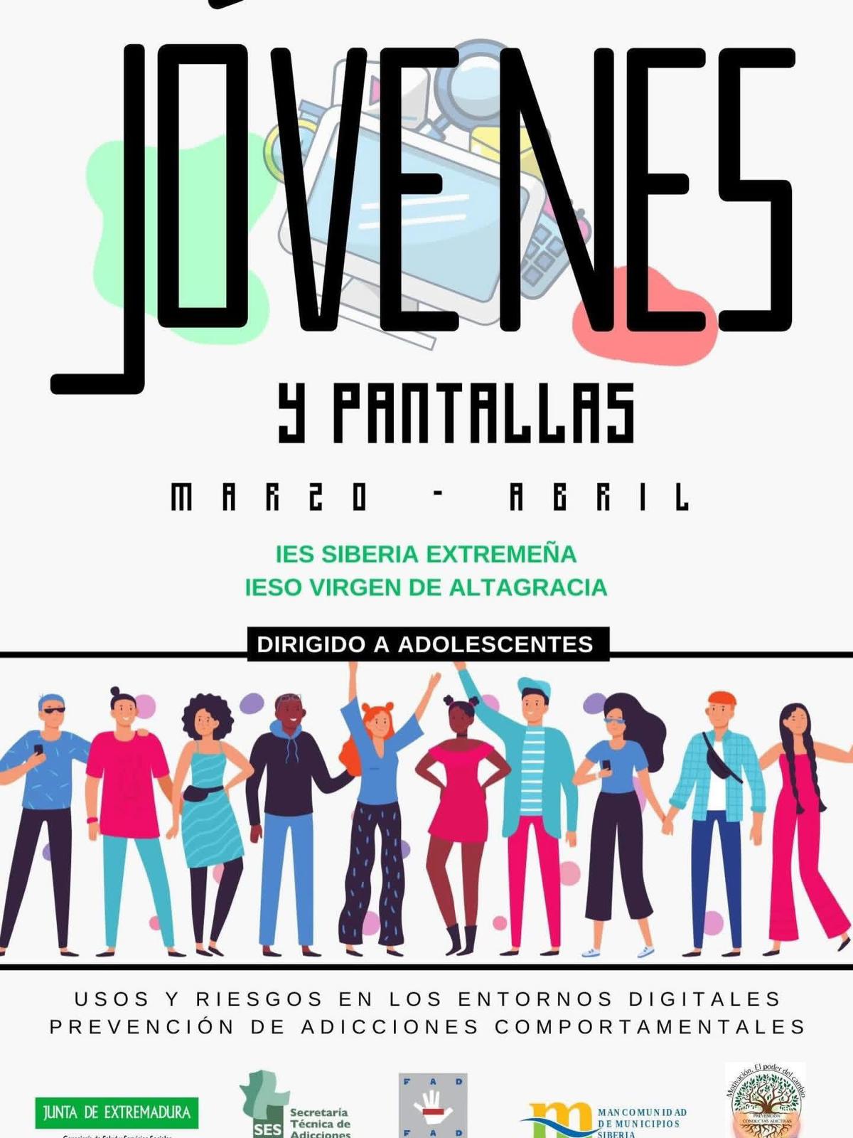 El Programa de Prevención de Conductas Adictivas de Mancomunidad de Municipios Siberia desarrollará durante los meses de marzo y abril el TALLER "JÓVENES Y PANTALLAS"