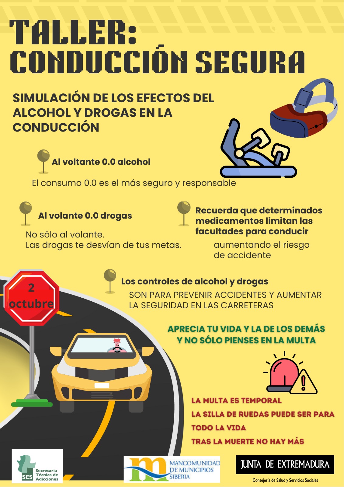 El programa de PREVENCIÓN DE CONDUCTAS ADICTIVAS de Mancomunidad de Municipios Siberia llevó acabo ayer, 02 de octubre, el TALLER CONDUCCIÓN SEGURA.