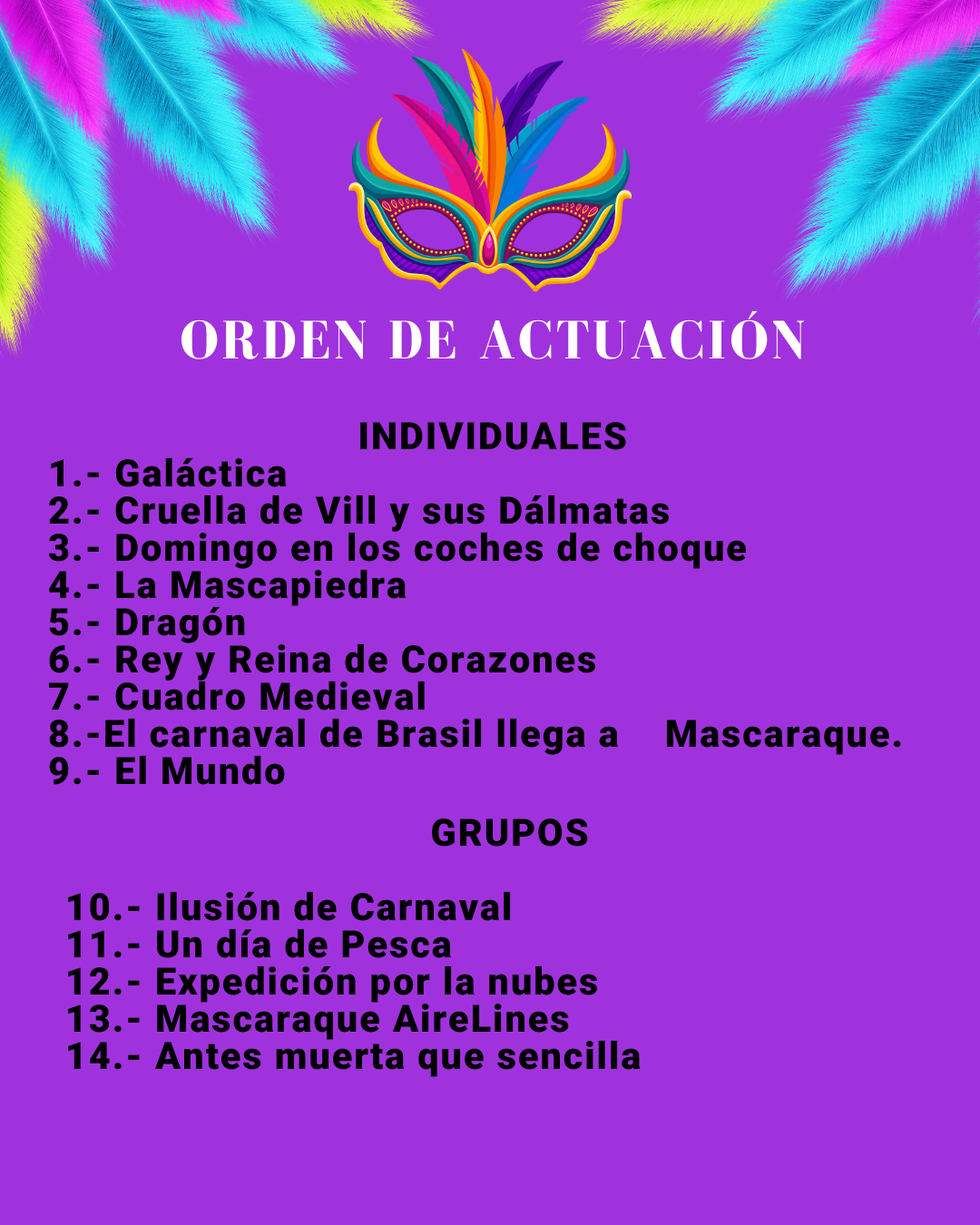 🎭✨ Orden de actuación Desfile de Carnaval ✨🎭
