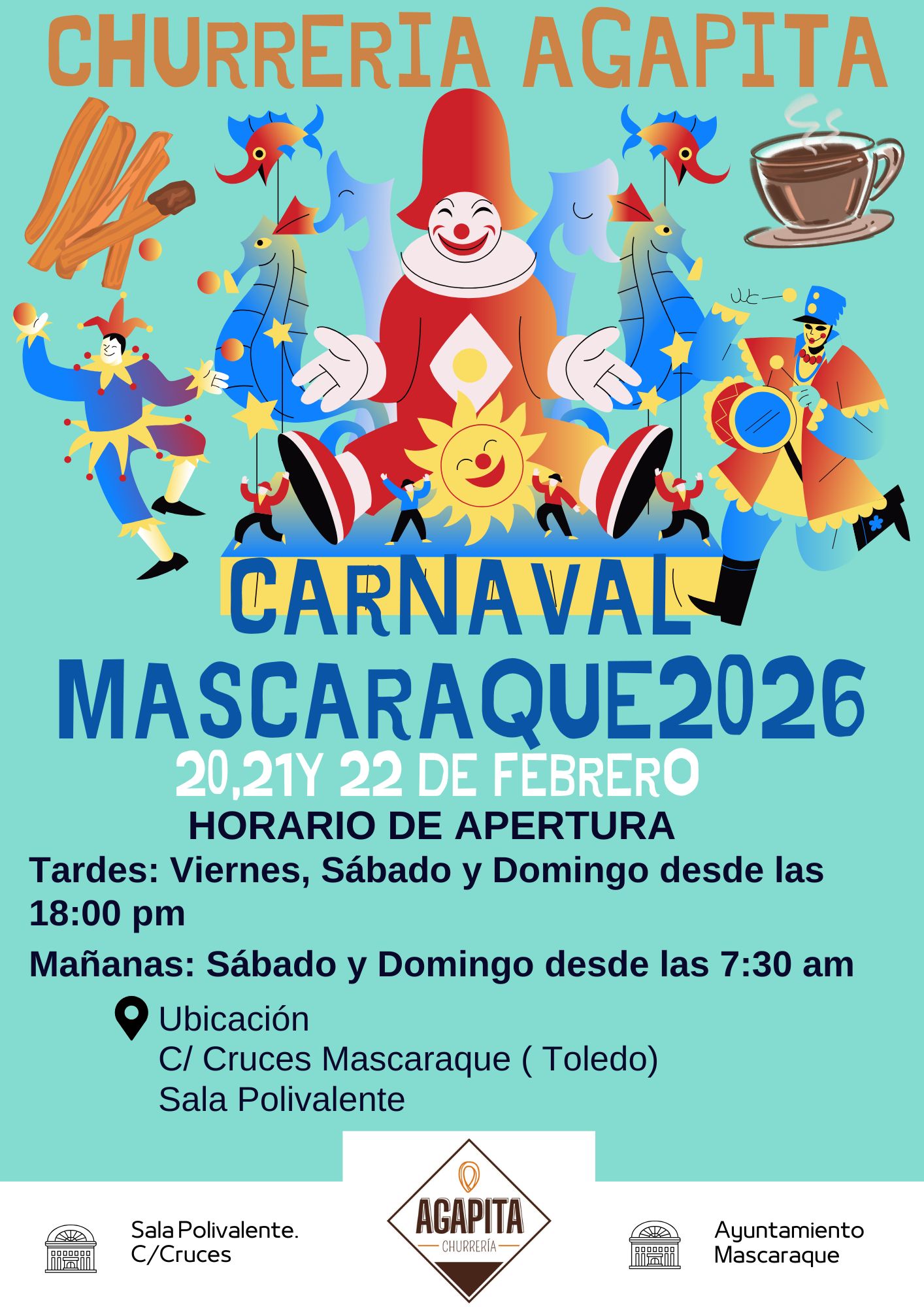 Desde hoy viernes y hasta el próximo domingo y aprovechando las fiestas de carnaval, tendremos churrería en la zona de la sala multiusos de la Calle Cruces. Nada mejor estos días que un chocolate con churros para pasar el frío. Todas las tardes a partir de las 18:00 horas y sábado y domingo también desde 07:30
