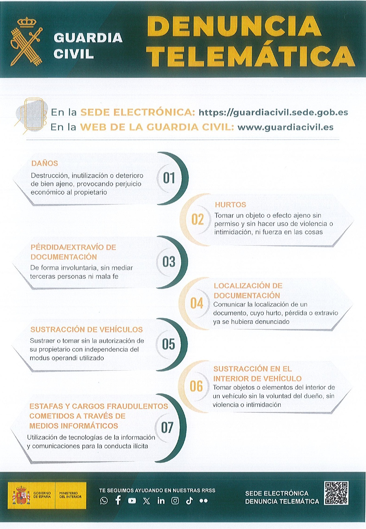 Desde el Puesto de Mora, la Guardia Civil recuerda a la ciudadanía que, a través de su sede electrónica y página web oficial, es posible denunciar de forma rápida y sencilla hechos como: