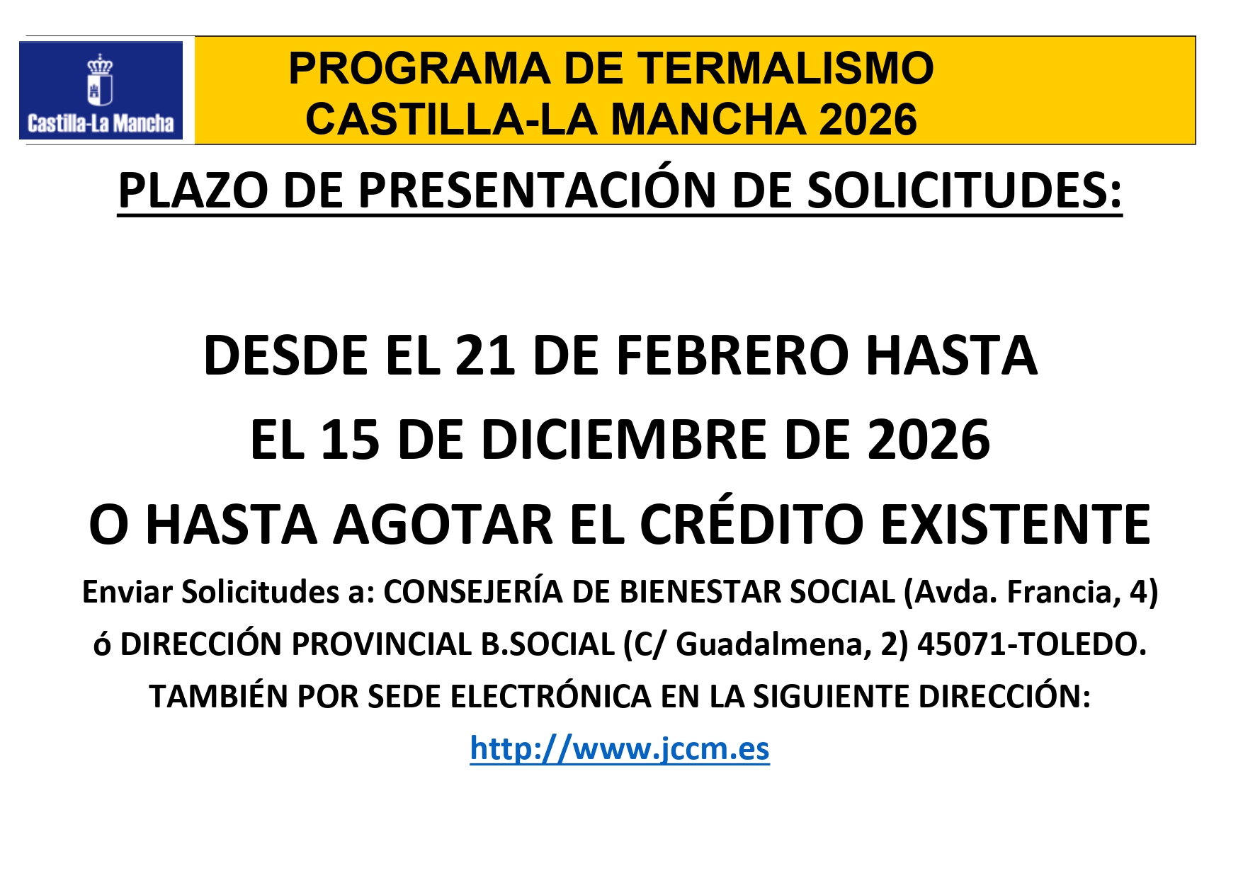 Desde el 21 de febrero hasta el 15 de diciembre de 2026 o hasta agotar el crédito disponible