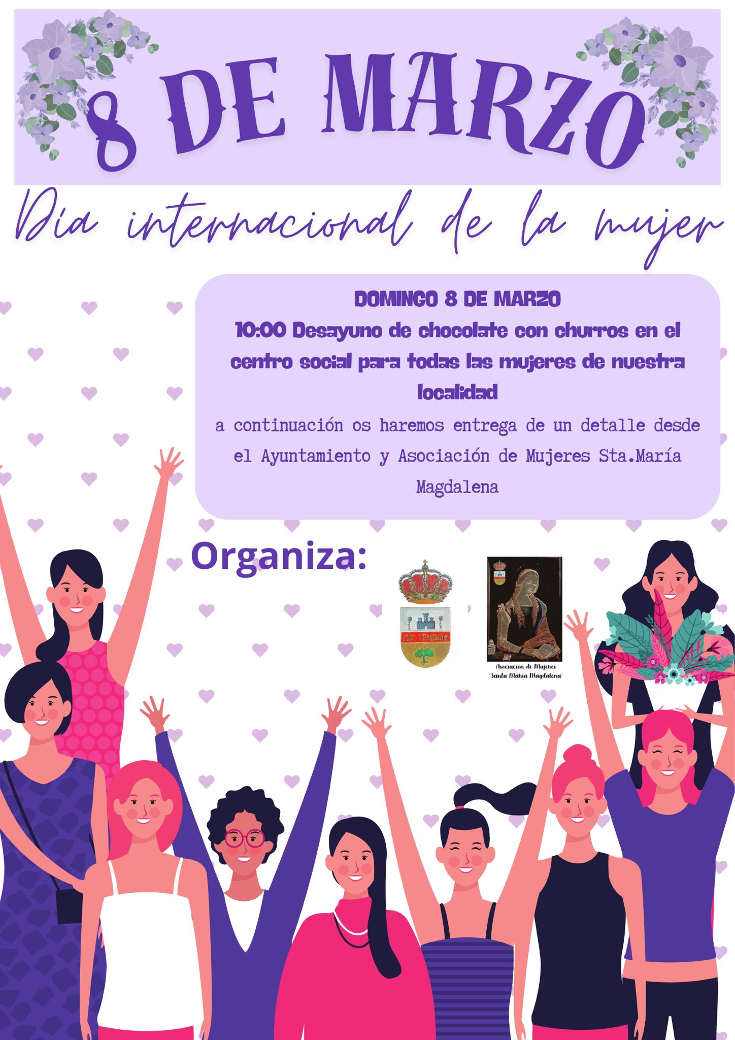 Para conmemorar el 8 de marzo, el Ayuntamiento de Mascaraque y la Asociación de Mujeres "Santa María Magdalena" os invitamos a empezar el día de la mejor manera.