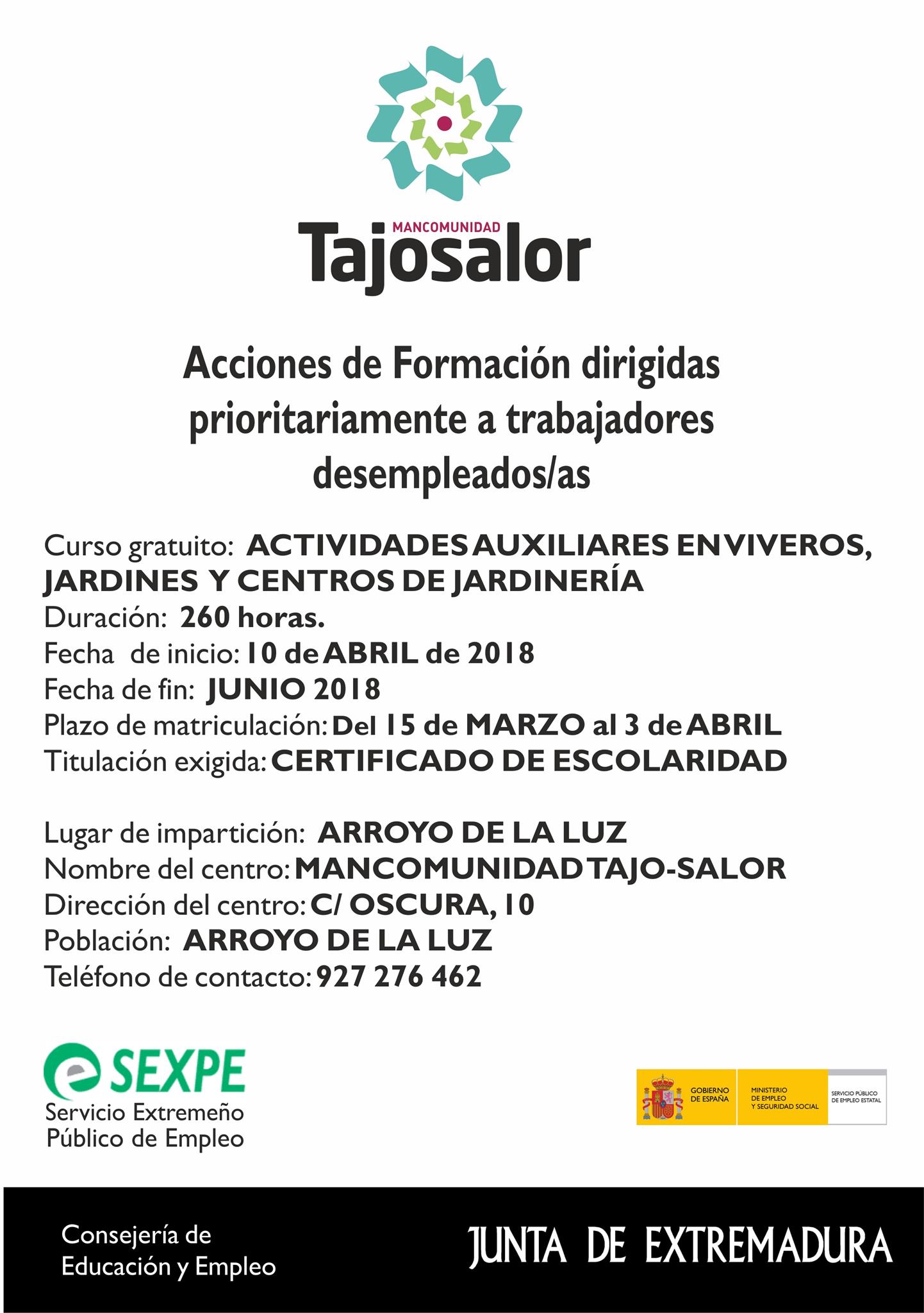 CURSO DE JARDINERÍA2018-03-19 11:06:08EmpleoDesde el Excmo. Ayuntamiento de Mata de Alcántara se informa: