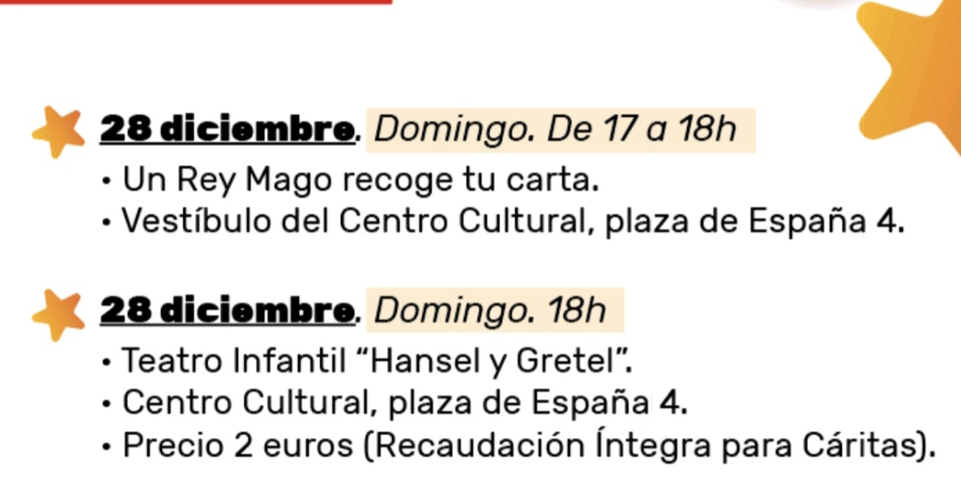 Teatro, música, talleres, excursiones,... los días de Navidad en nuestro pueblo se presentan muy atractivos y entretenidos.